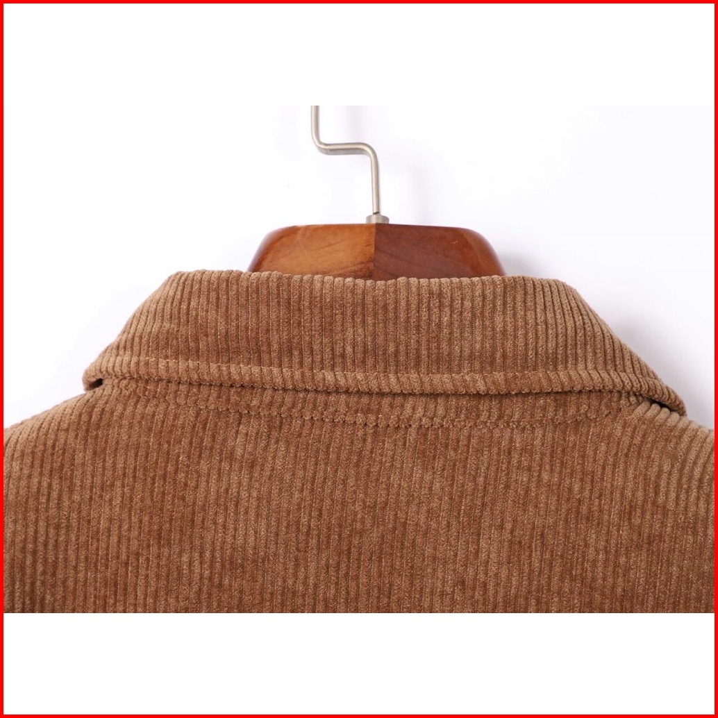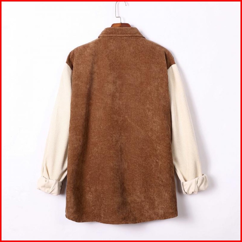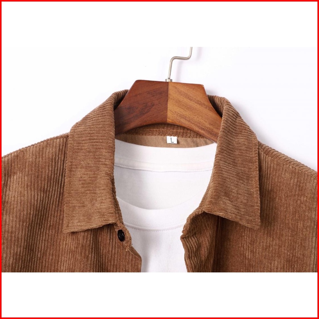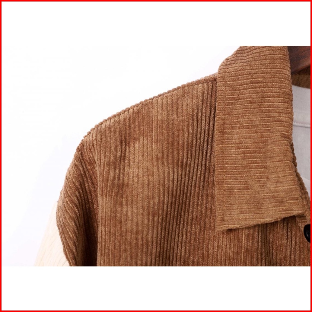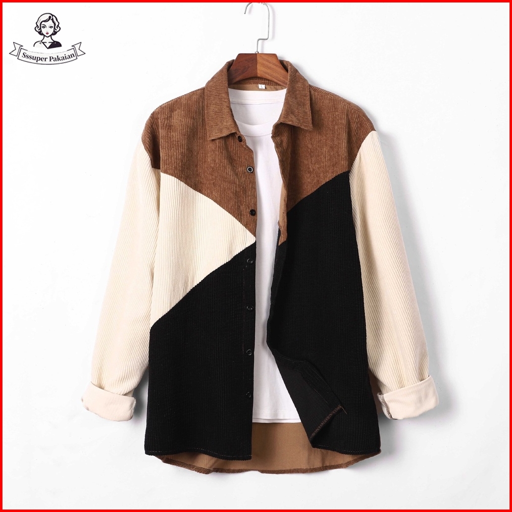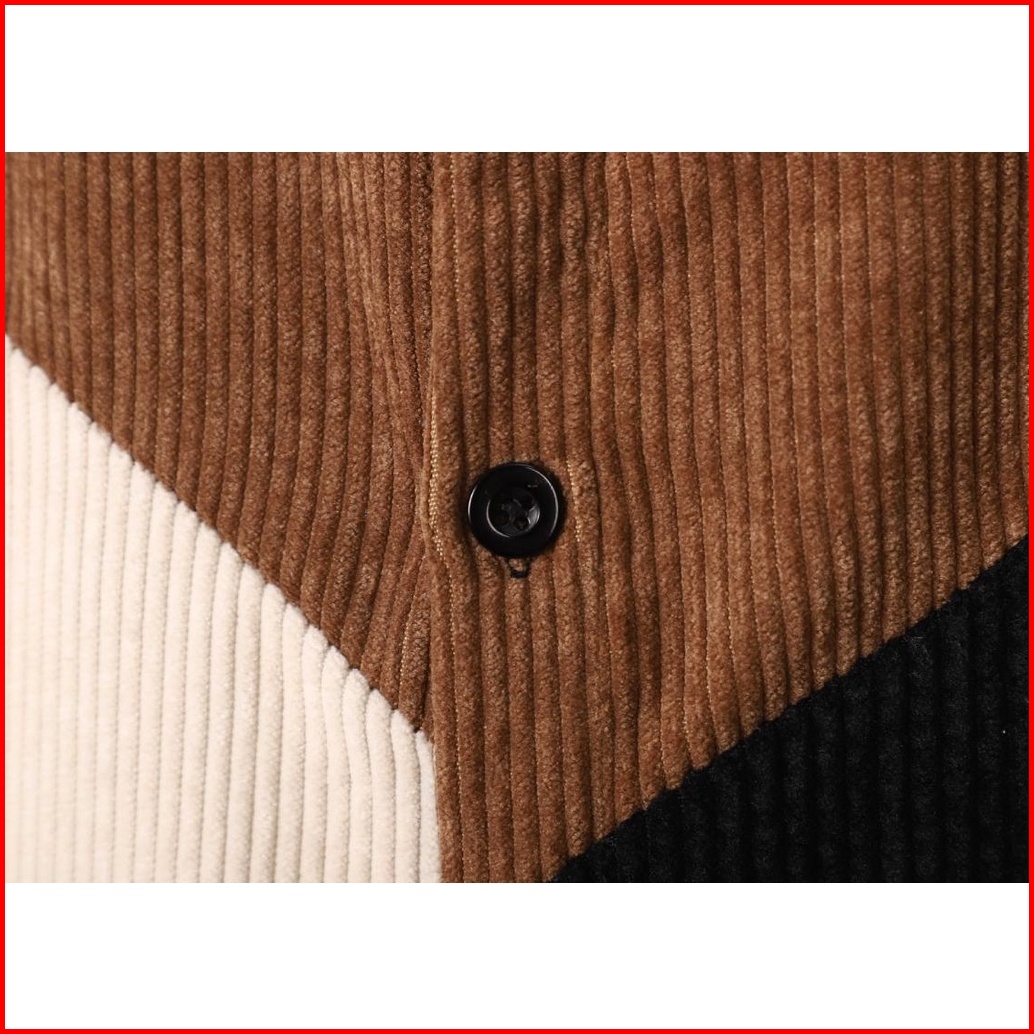 Kemeja Lengan Panjang Korduroi Perca Modis Tren Pria Jalanan Kemeja Lengan Panjang Hiasan Perca Retro