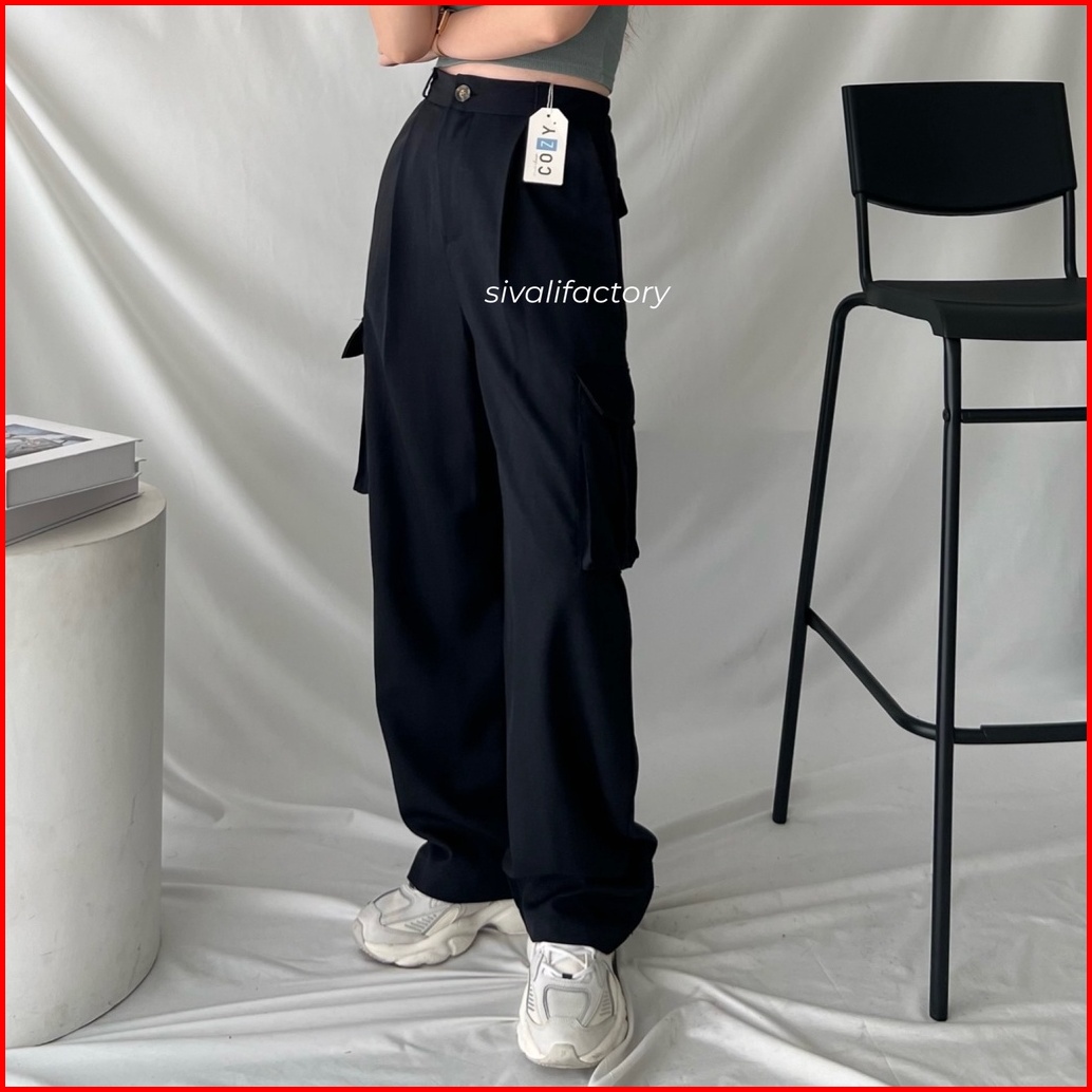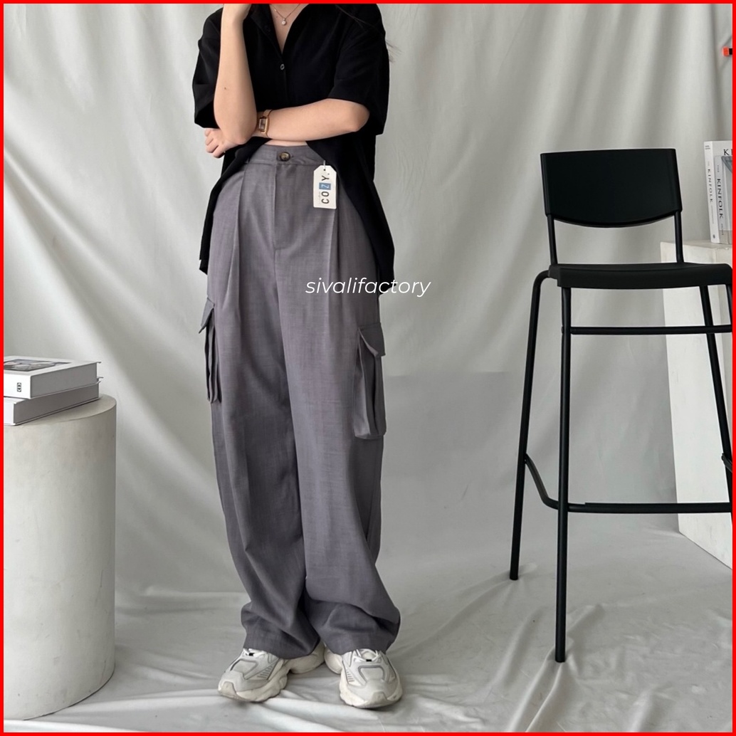 Sivali Joan Cargo Pants - Highwaist Loose Cargo - Celana Kargo Wanita - Baggy Pants 823
