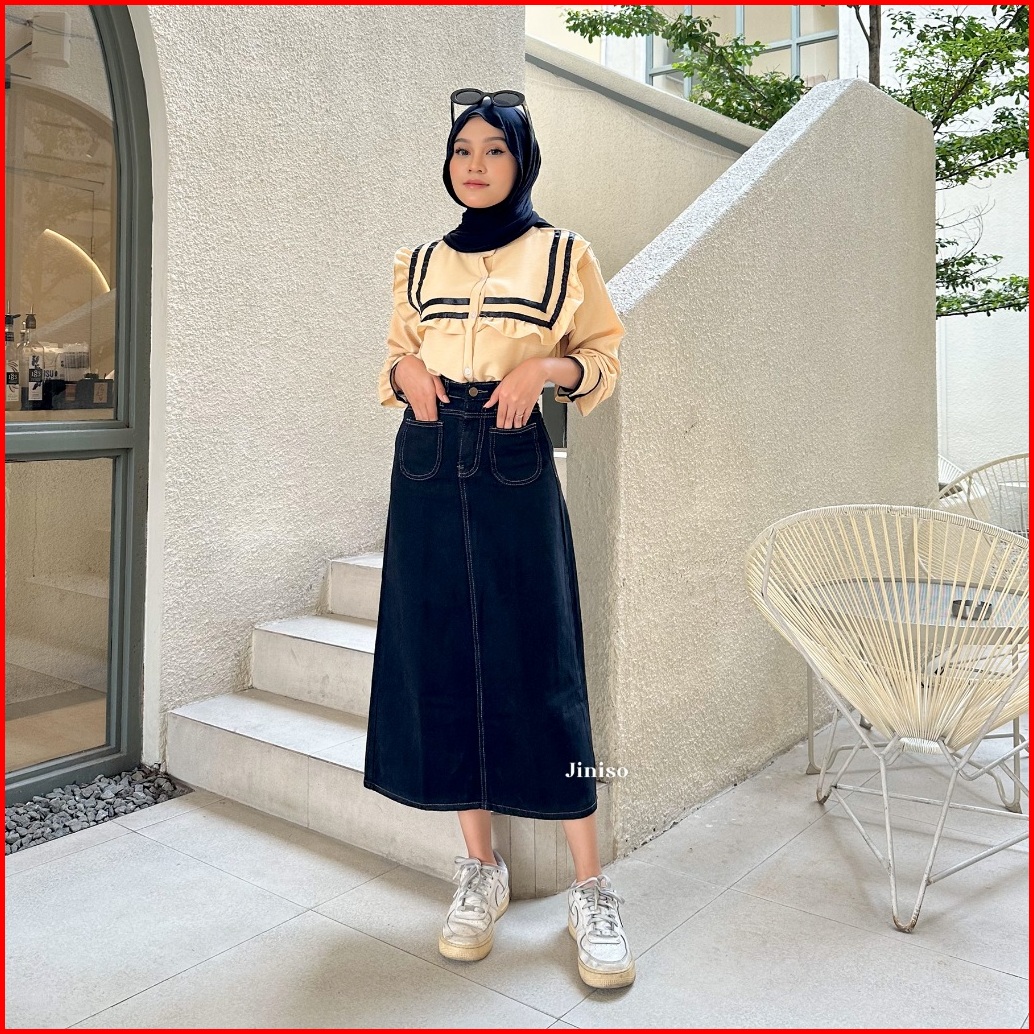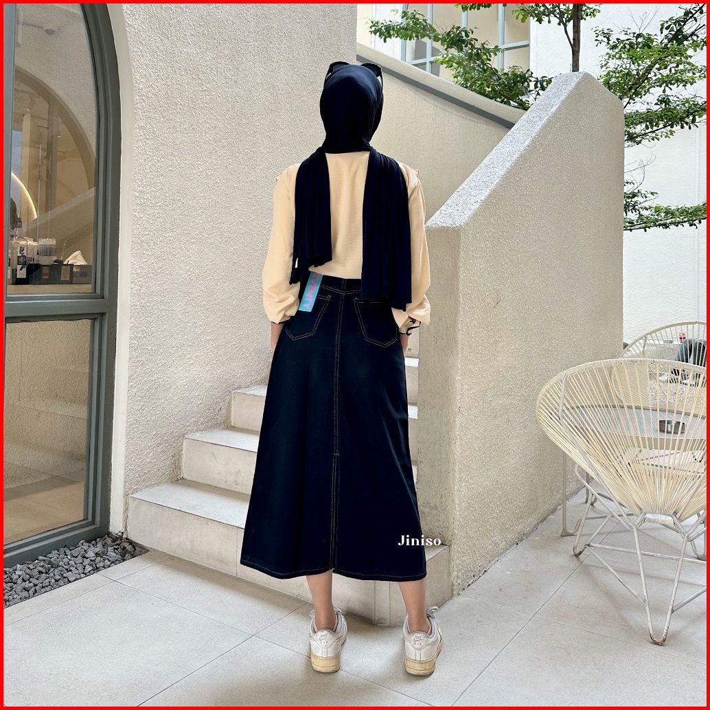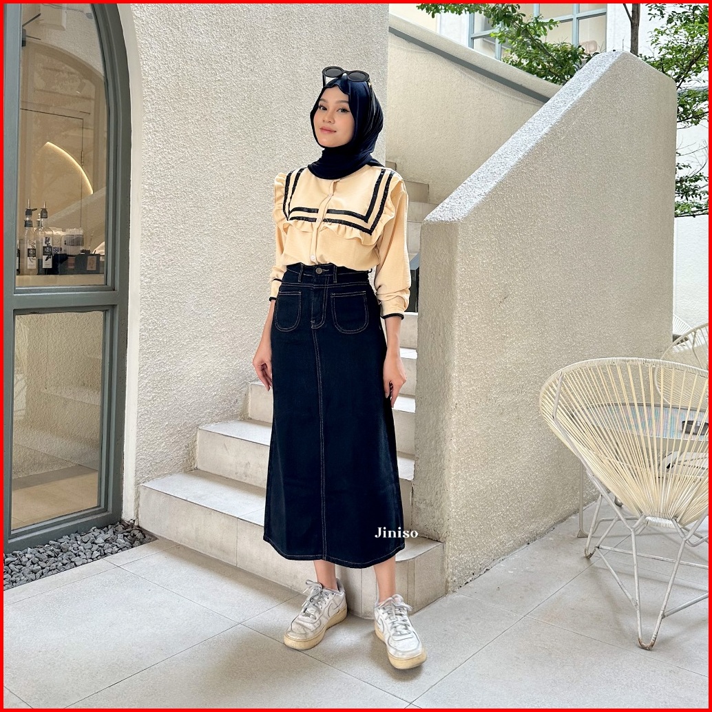 Jiniso - Highwaist Pocket Rok Slit Jeans Panjang 969 Seventy