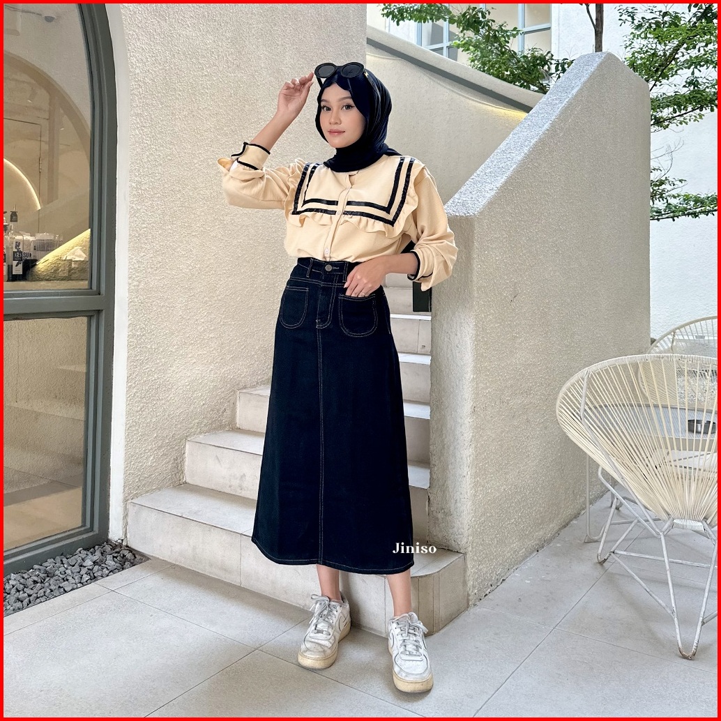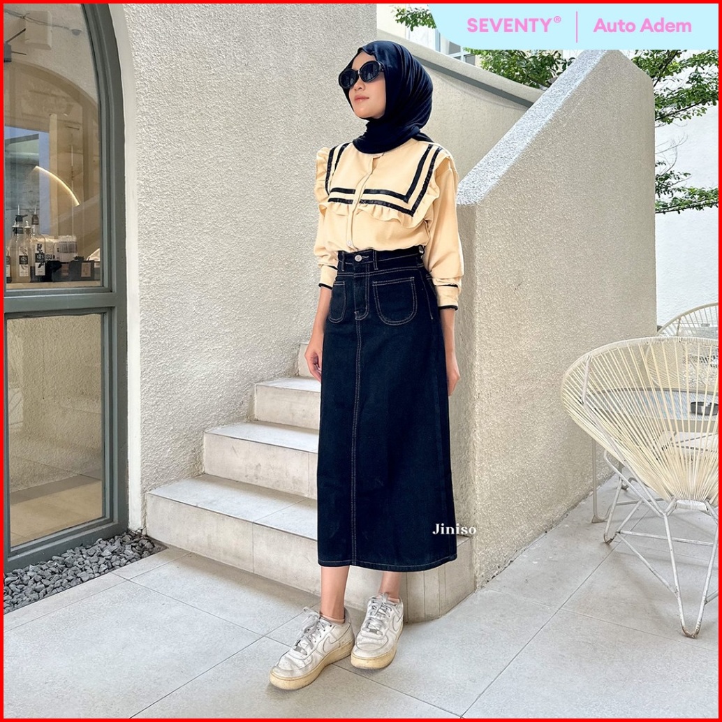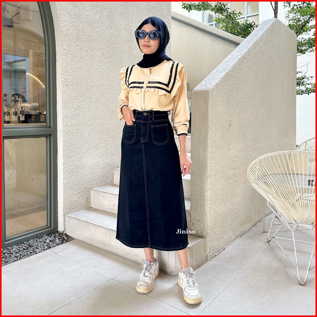 Jiniso - Highwaist Pocket Rok Slit Jeans Panjang 969 Seventy