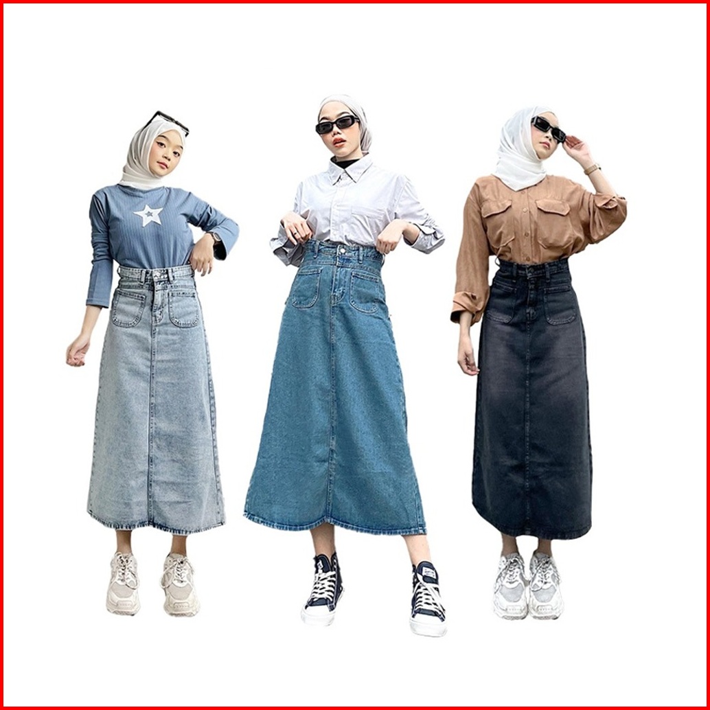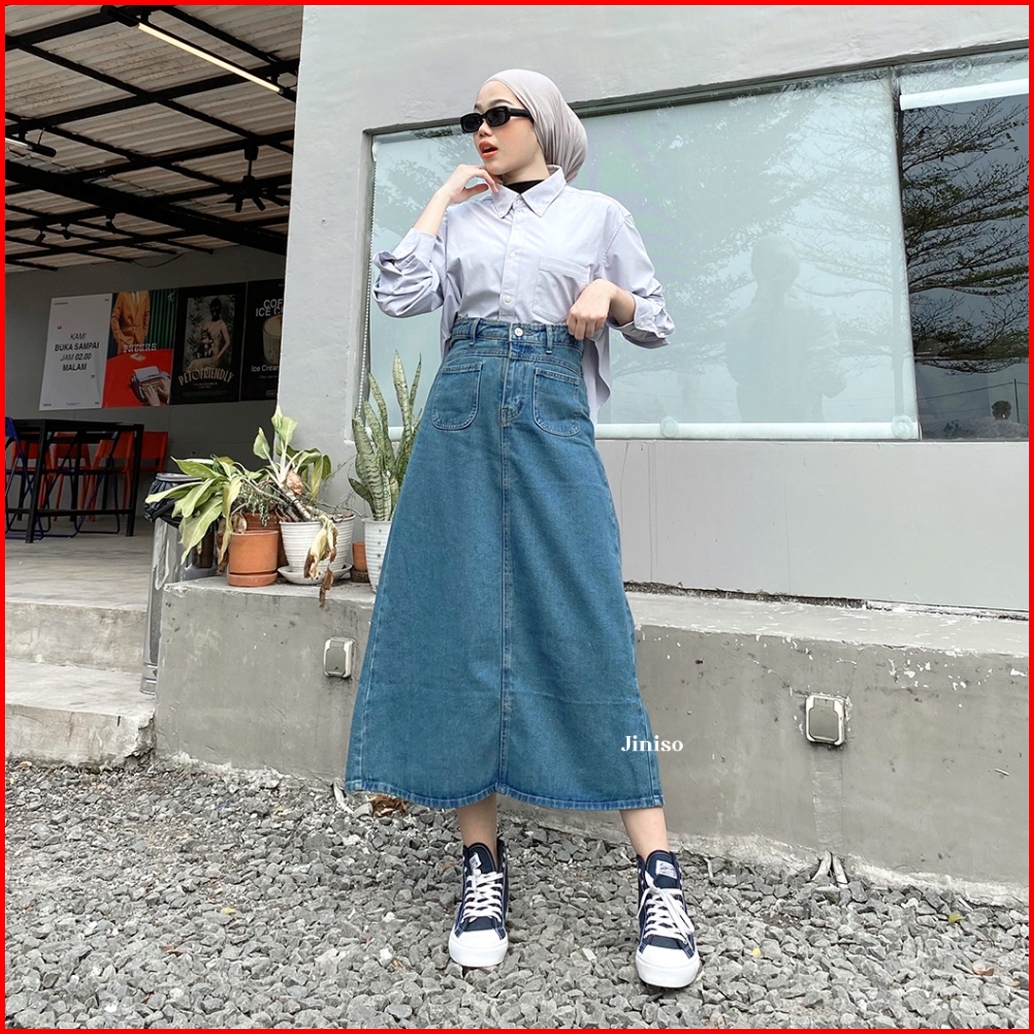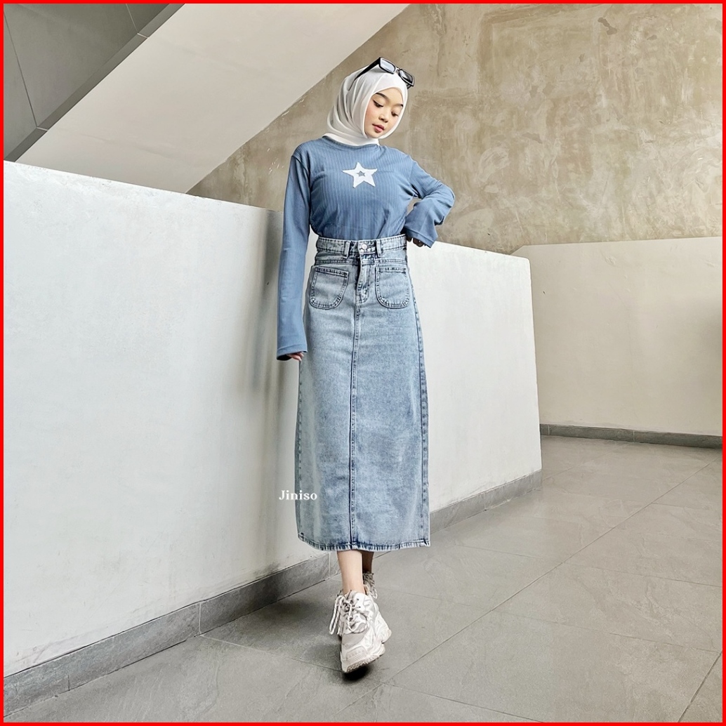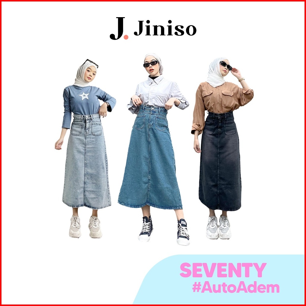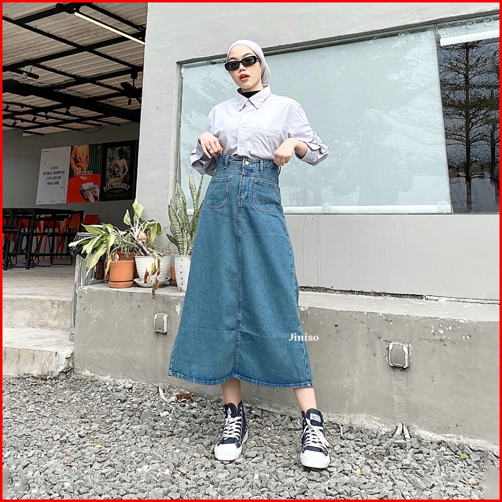 Jiniso - Highwaist Pocket Rok Slit Seventy Jeans Panjang