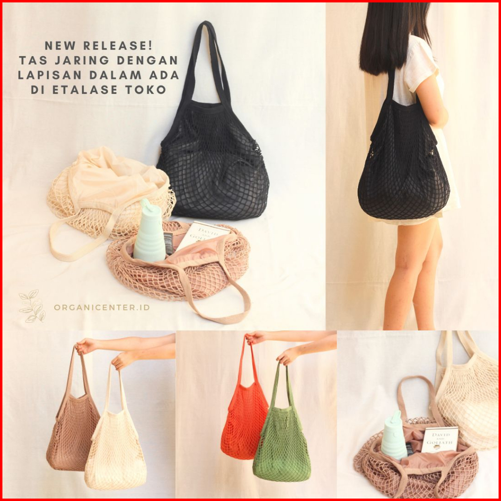 Tas Belanja Jaring Reuseable Net Grocery Bag Katun Cotton Mesh Bag Eco Friendly Kantong Shopping Bag Serba Guna Zero Was