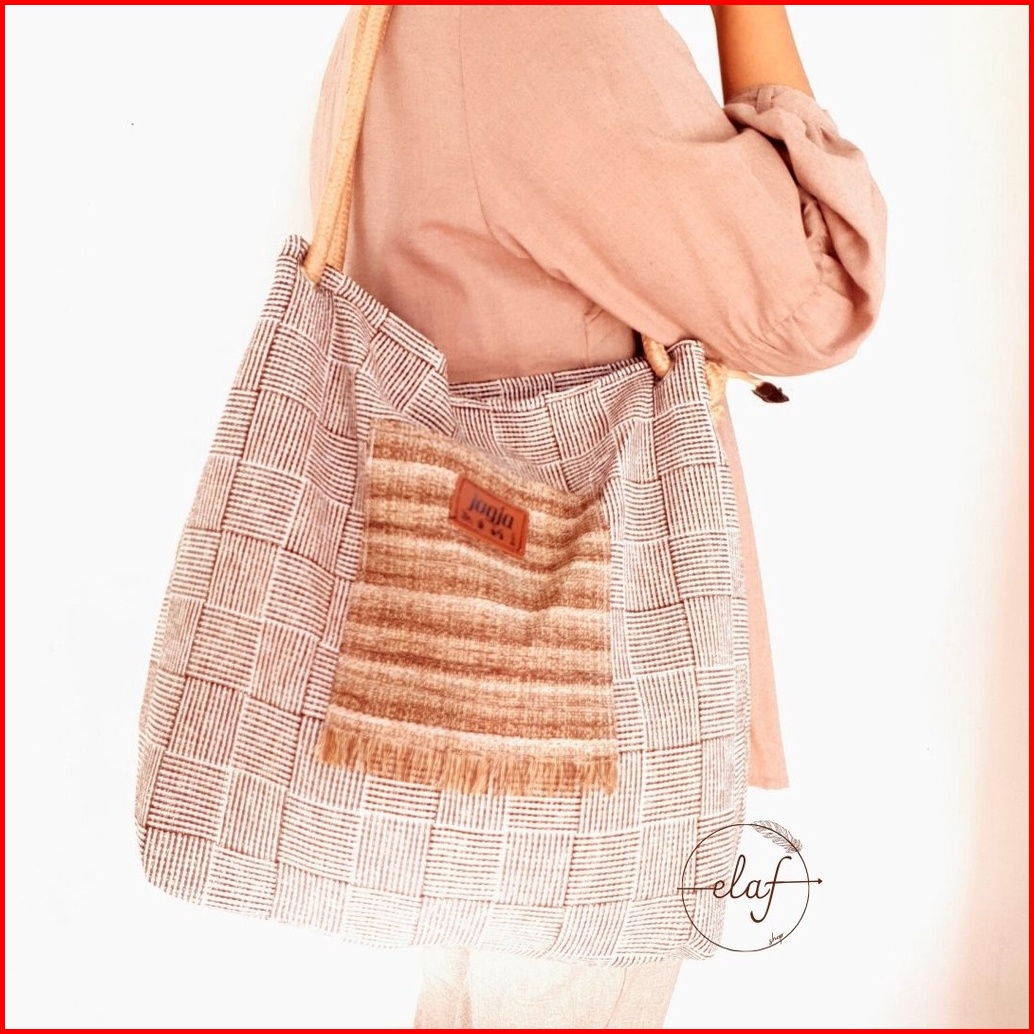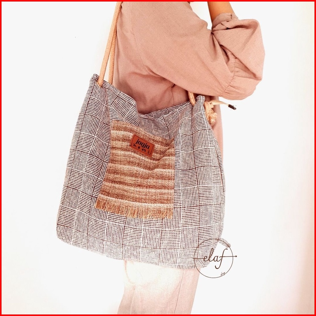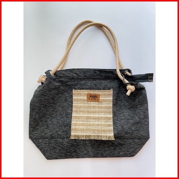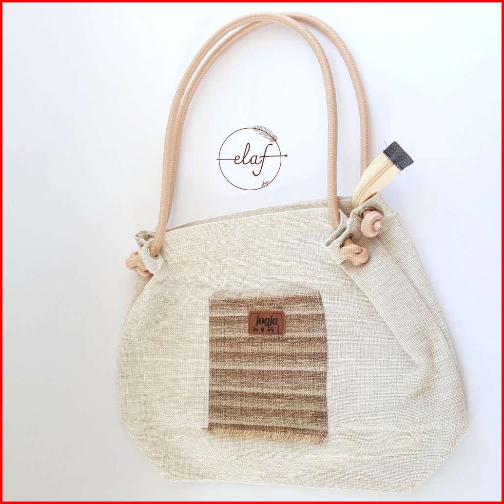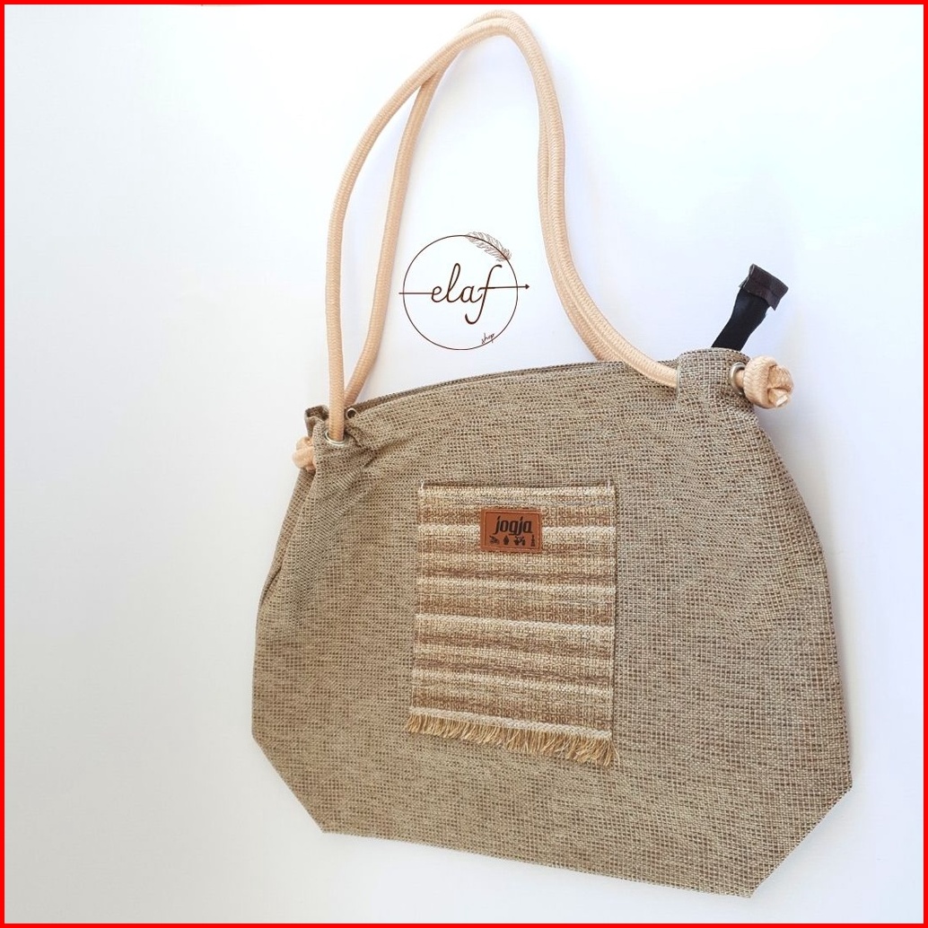 Totebag Wanita Resleting Tali Sumbu Tas Pantai Besar Resleting Tas Tote Goni Sintetis