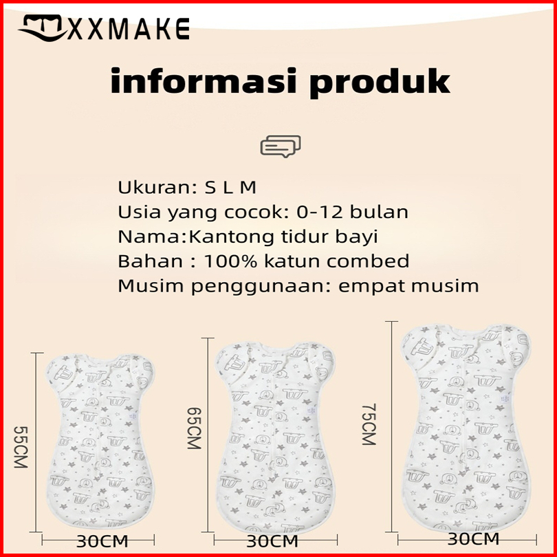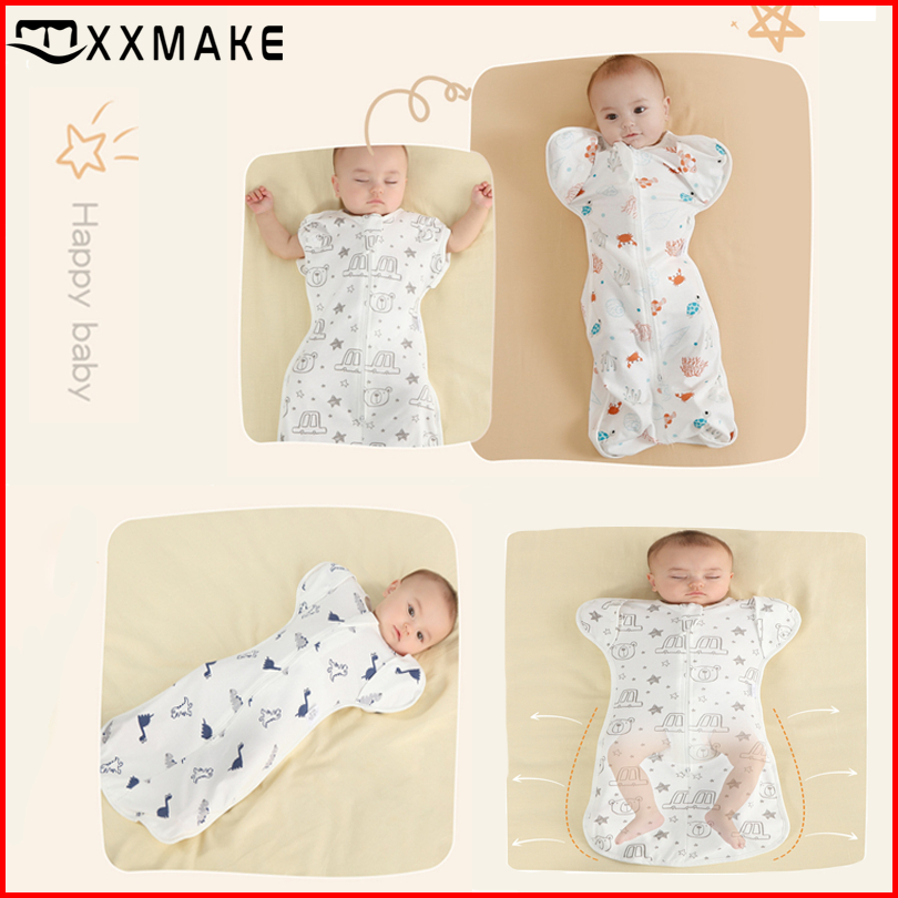 Xxmake Sleep Sack Bayi Kantong Tidur Kartun Katun Bayi Jumpsuit Bayi Kantong Tidur Selimut Bayi 2-in-1 Lengan Dapat Dipe
