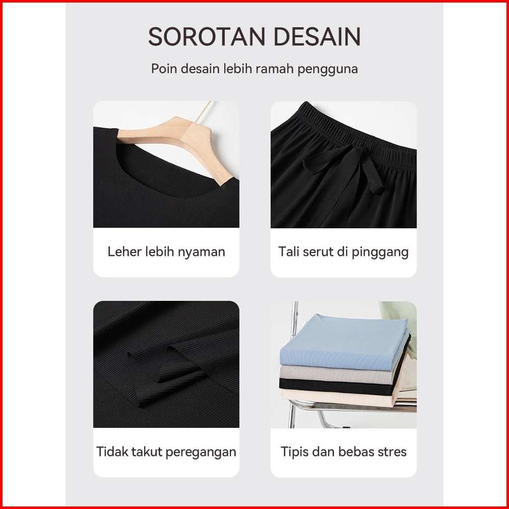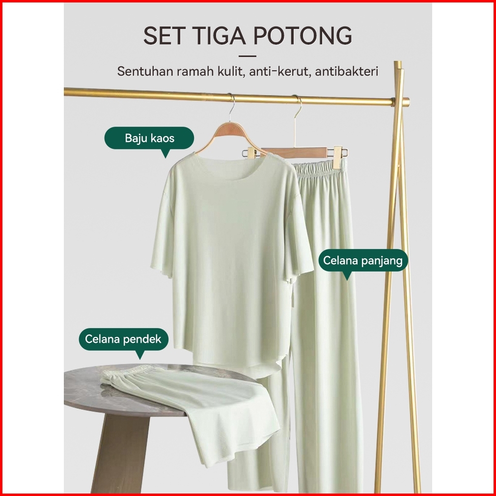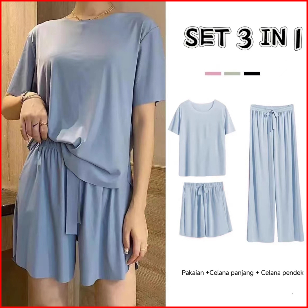 Set 3 In 1 Setelan Kaos Wanita Gaya Korea Baru Celana Panjang Celana Pendek Set Tiga Potong