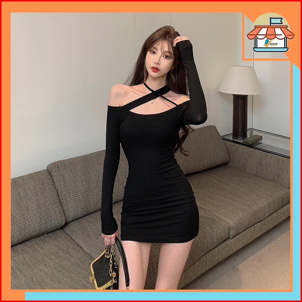 Rsb Dr359 Baju Mini Dress Sabrina Knit Dress Wanita Long Sleeve Motif Polos