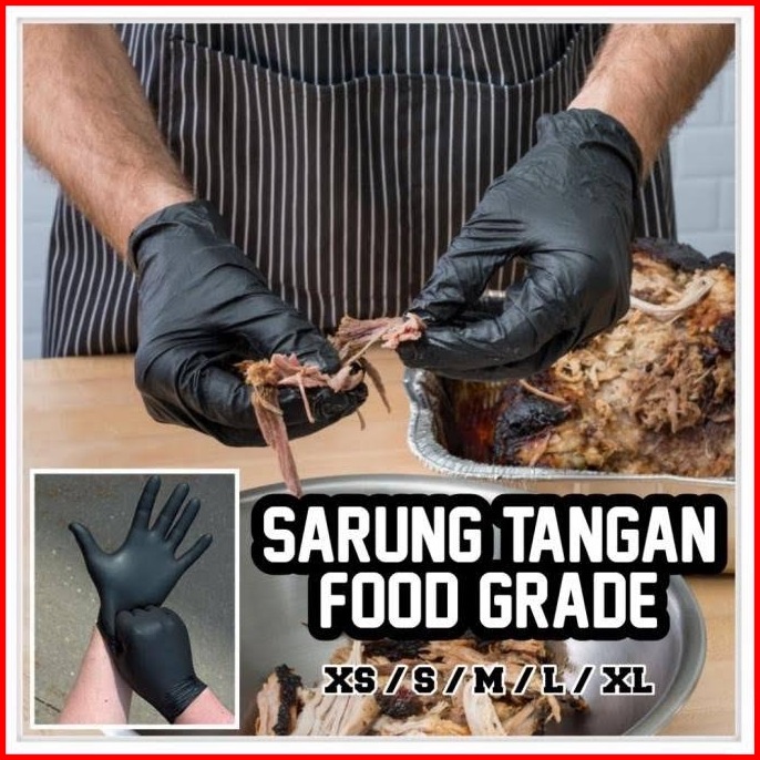 Sarung Tangan Nitrile Hitam Black 100pcs Powder Free Foodgrade Tebal Dan Kuat