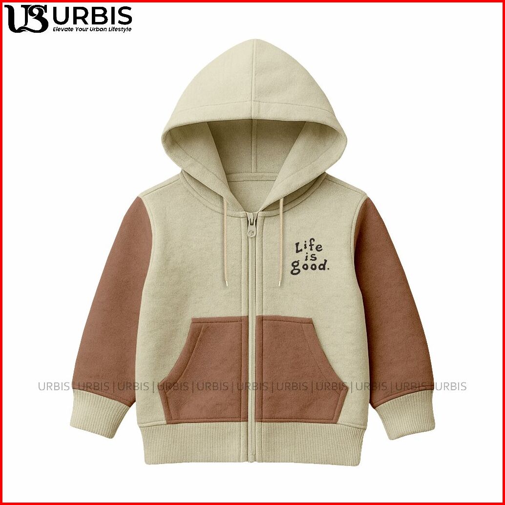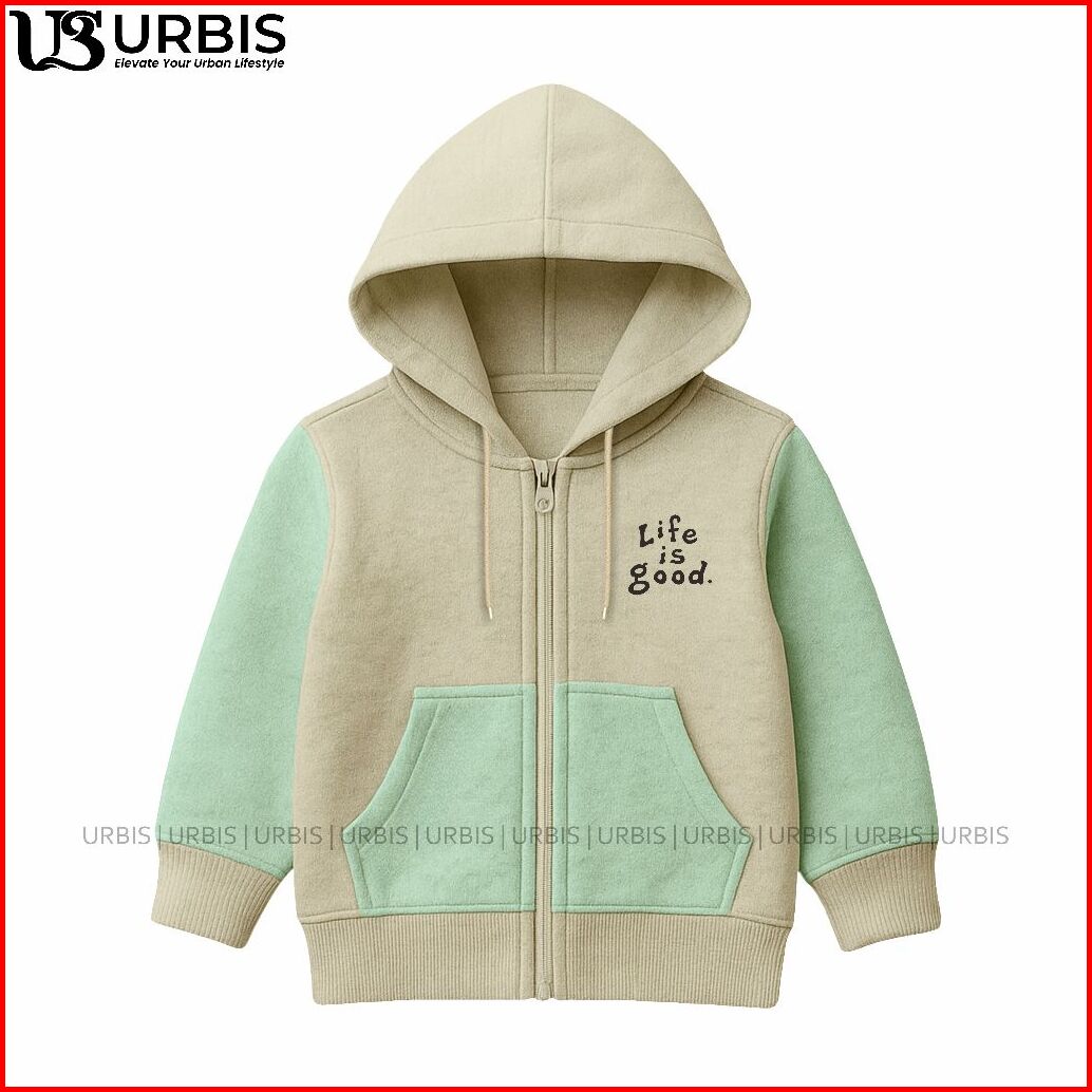 Urbis Jaket Zipper Anak Laki-laki Perempuan Kombinasi Usia 3-13 Tahun Life Is Good Fleece Tebal