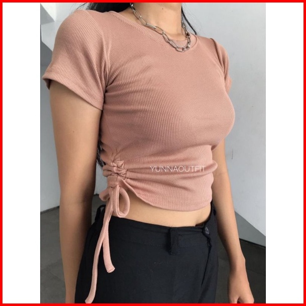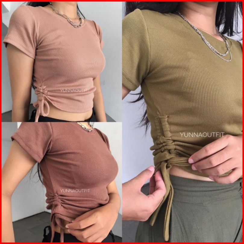 Baju Kerut Samping Top Rib Serut Baju Chika Rib Premium