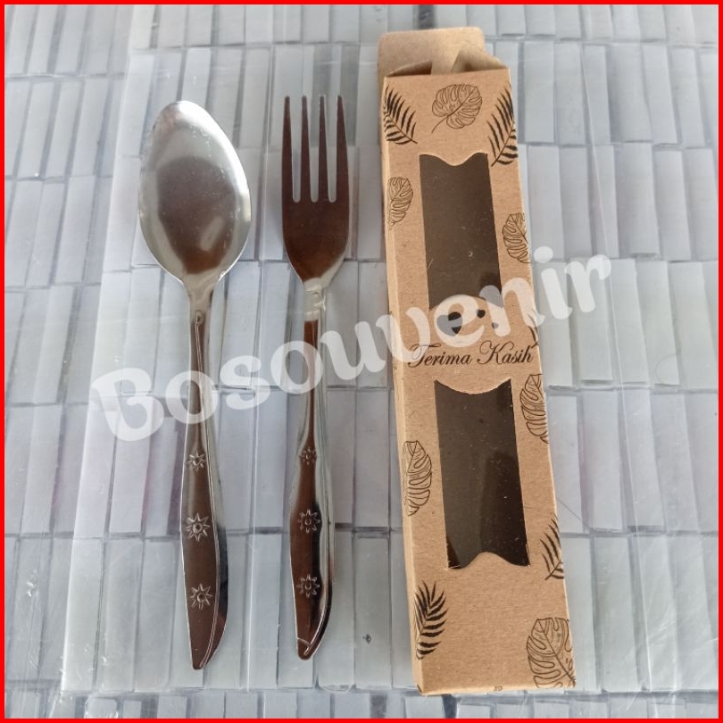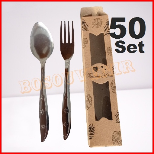 Isi 50 Set Sendok Garpu Stainless Bintang Box Rustic Souvenir Pernikahan