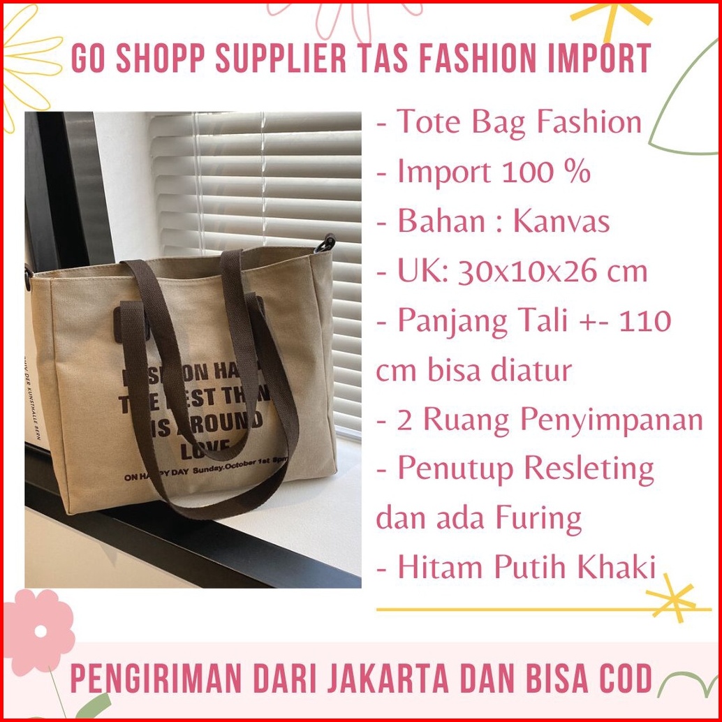 Tas Tote Bag Wanita Kanvas Resleting Import Fashion Korea Terbaru Kekinian - Totebag Selempang Aesthetic Kuliah Kantoran