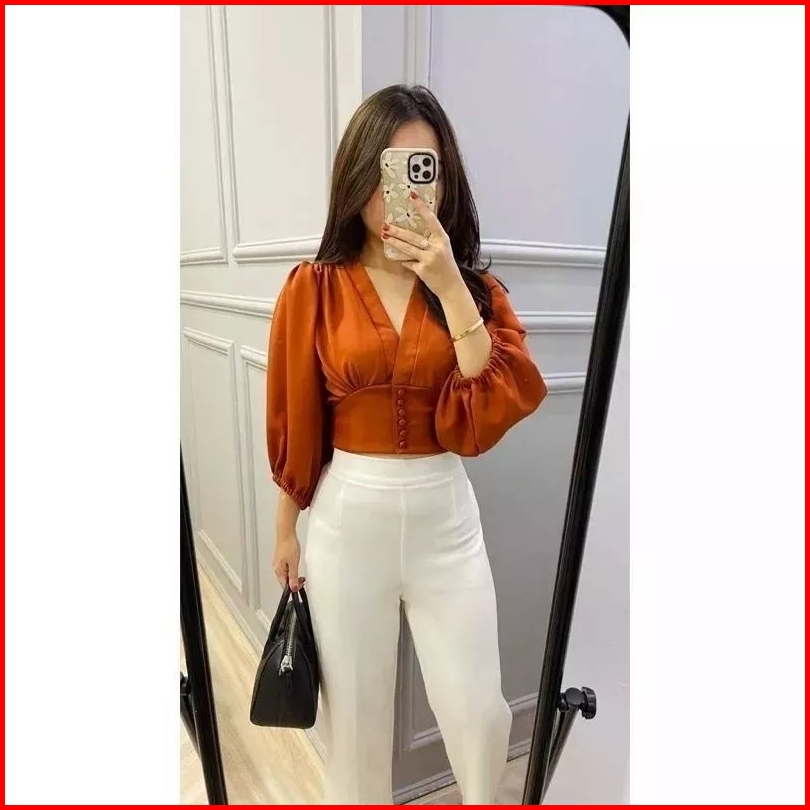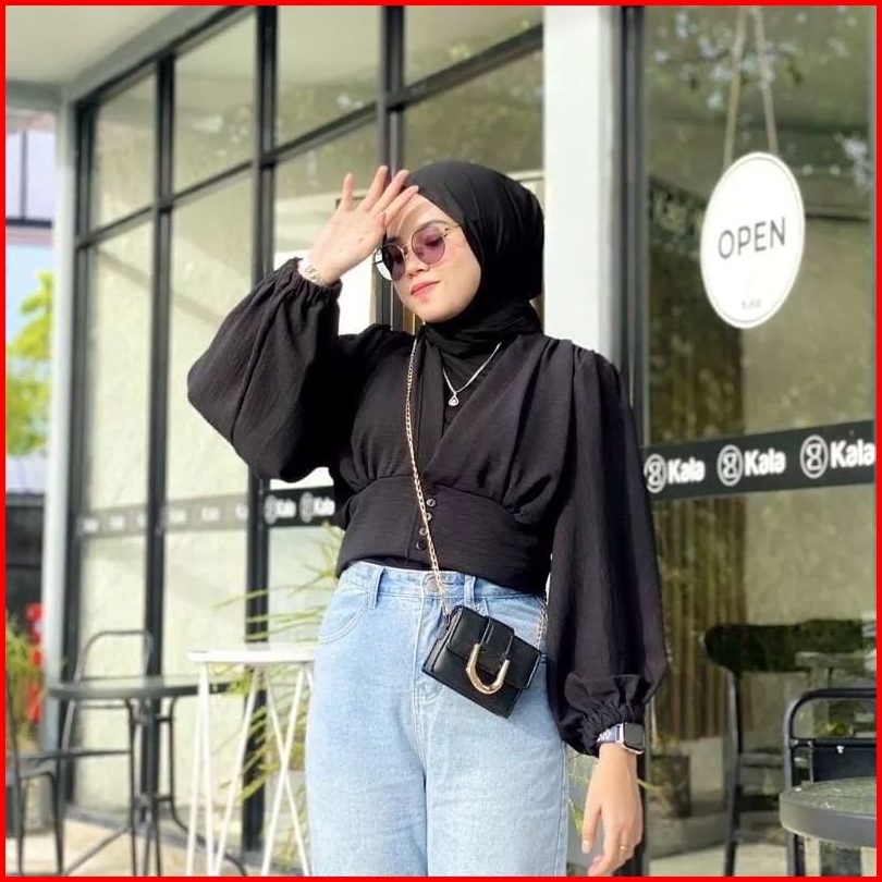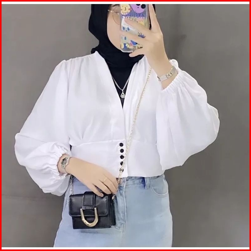 Maurin Top Blouse Bianca Semi Outer Crincle Premium