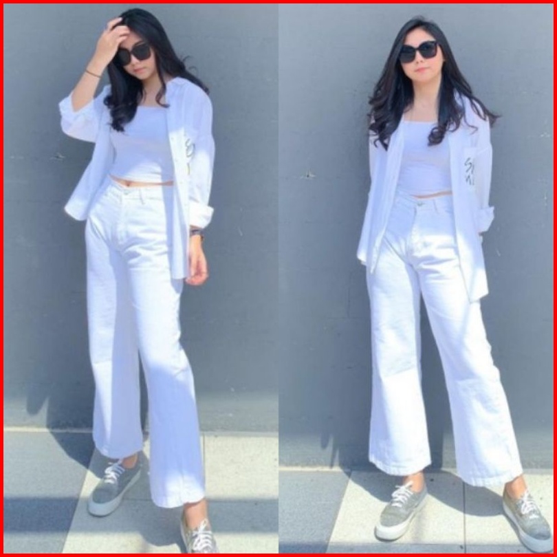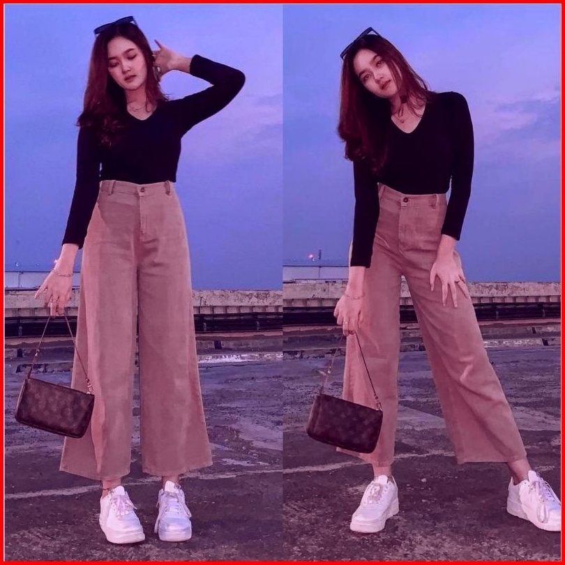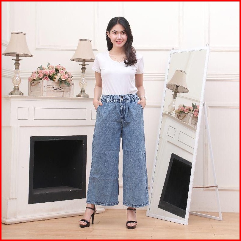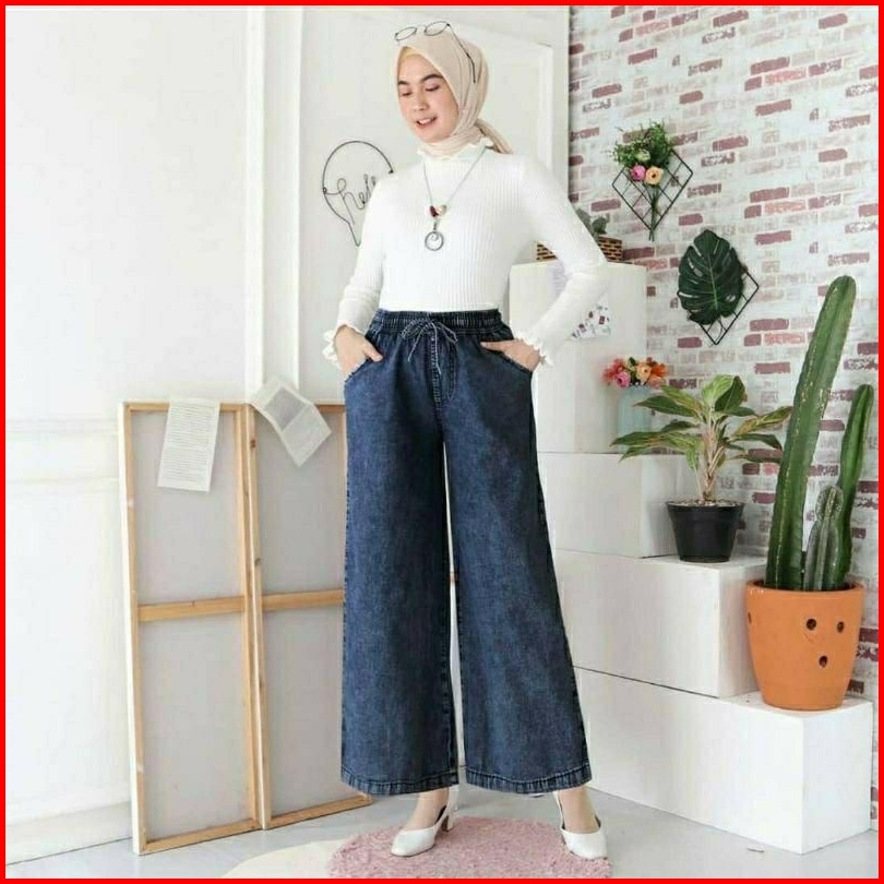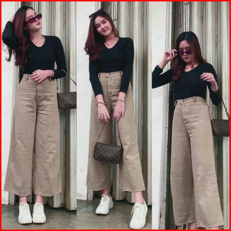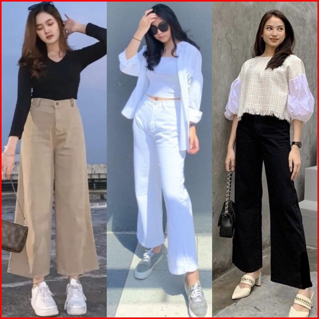 Celana Kulot Jeans Wanita Highwaist Polos Putih Hitam