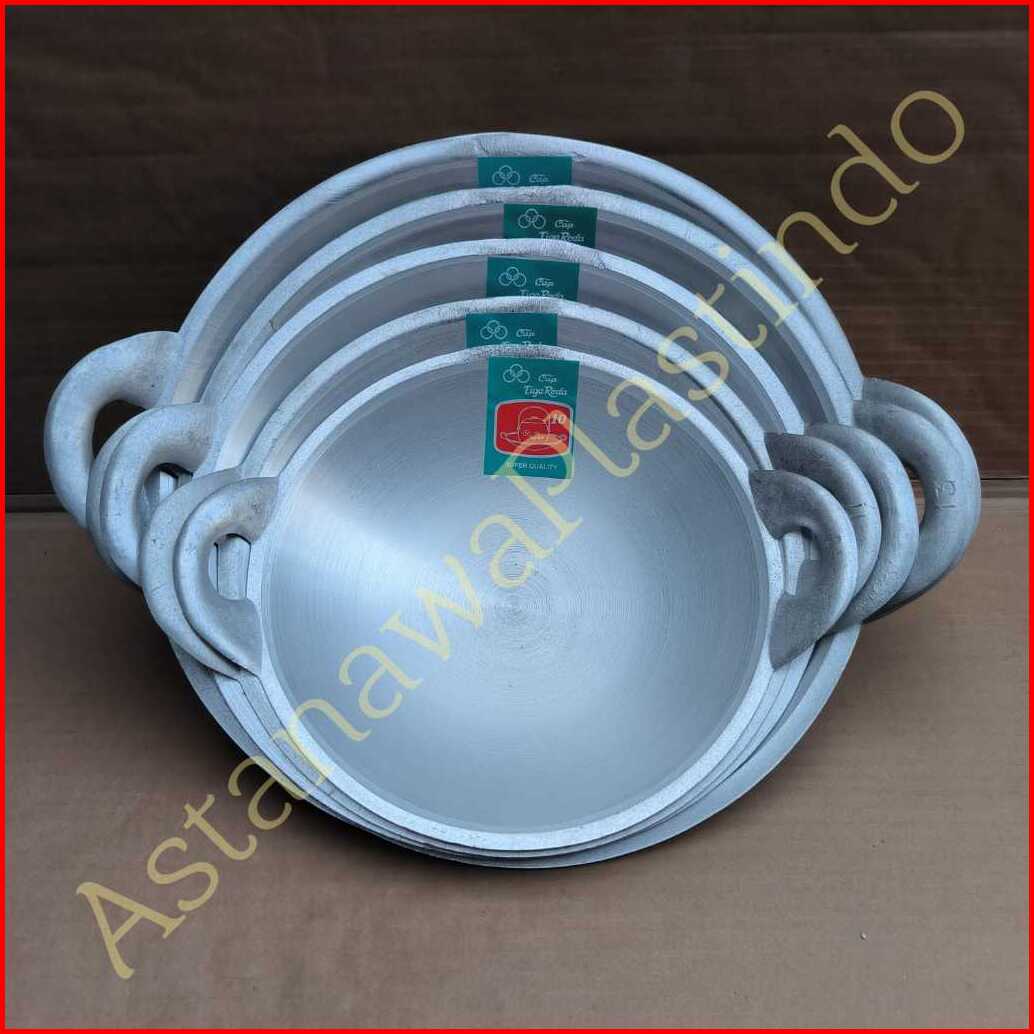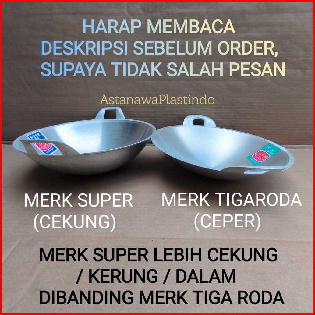 Super Wajan Penggorengan Kuali Tiga Roda Merk Super Kuwali Cekung Alumunium Tebal Tigaroda Ceper Anti Lengket