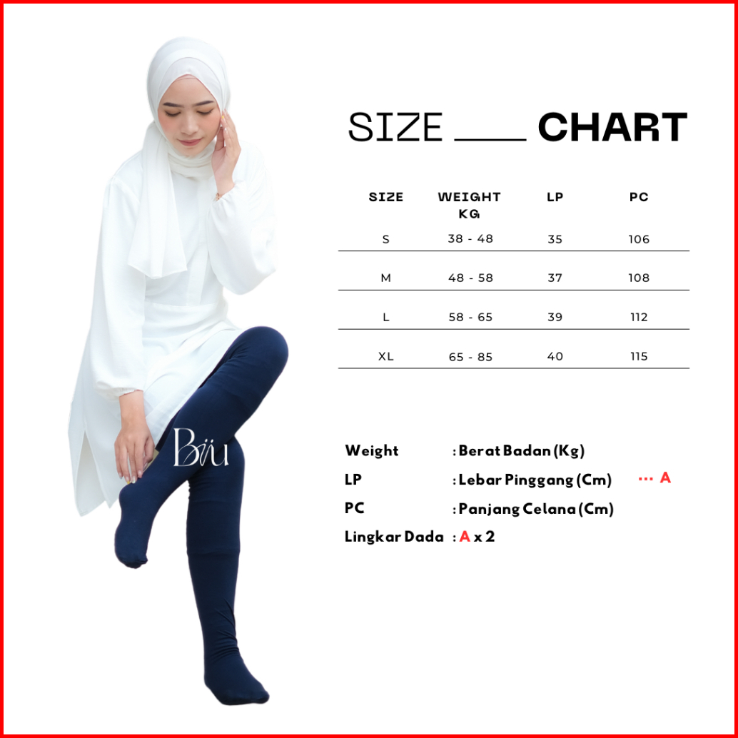 Legging Wudhu Wanita Muslimah Rayon Stretch Premium Adem Lentur Biiu