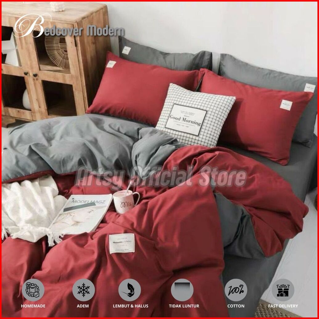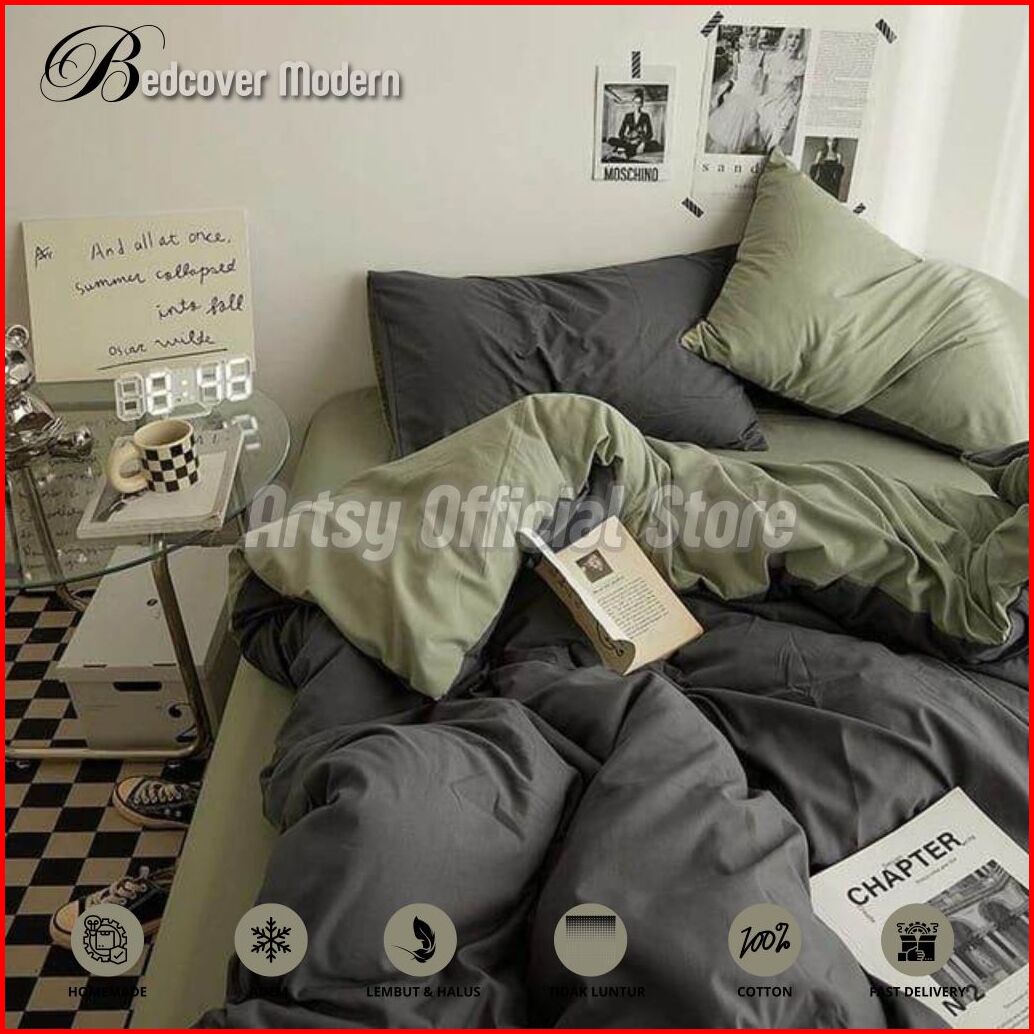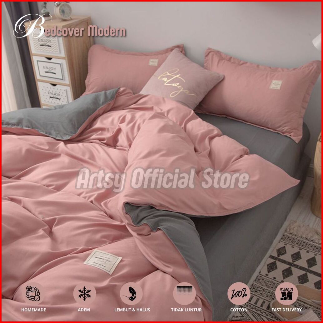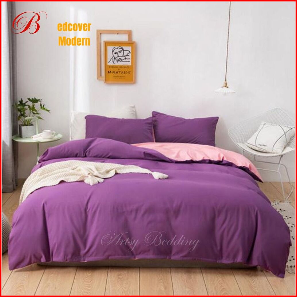 Bedcover Set Aesthetic Polos Simple Bedcover Twotone Kombinasi Dua Warna Ukuran Single 120 100 90