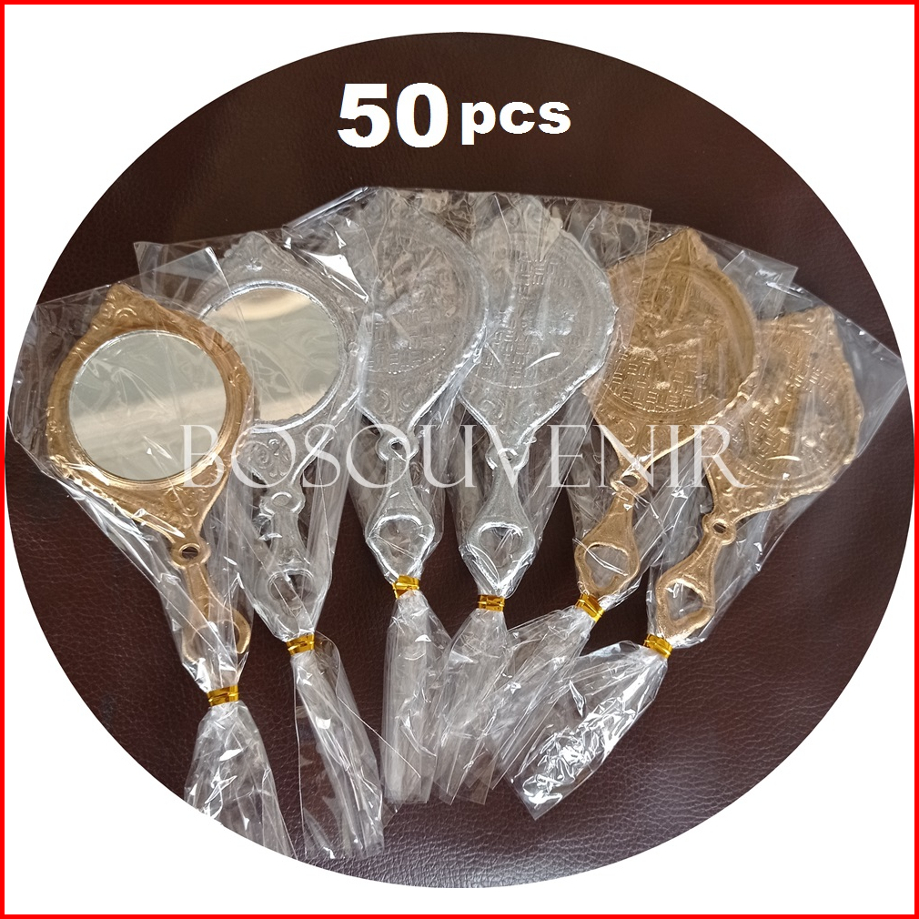 Isi 50 Kaca Gagang Bulat Souvenir Pernikahan Cermin Rias