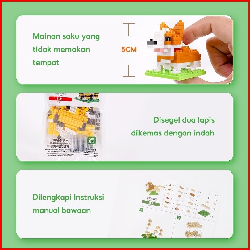 Ohsome -jike Building Blocks - Animal Kingdom Blok Mainan - Hewan