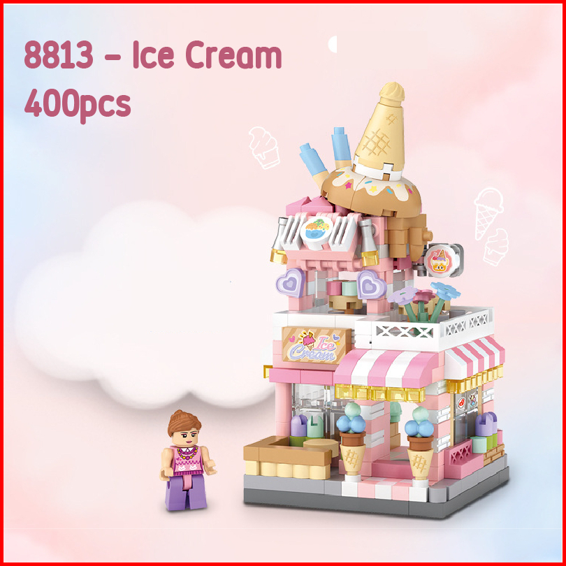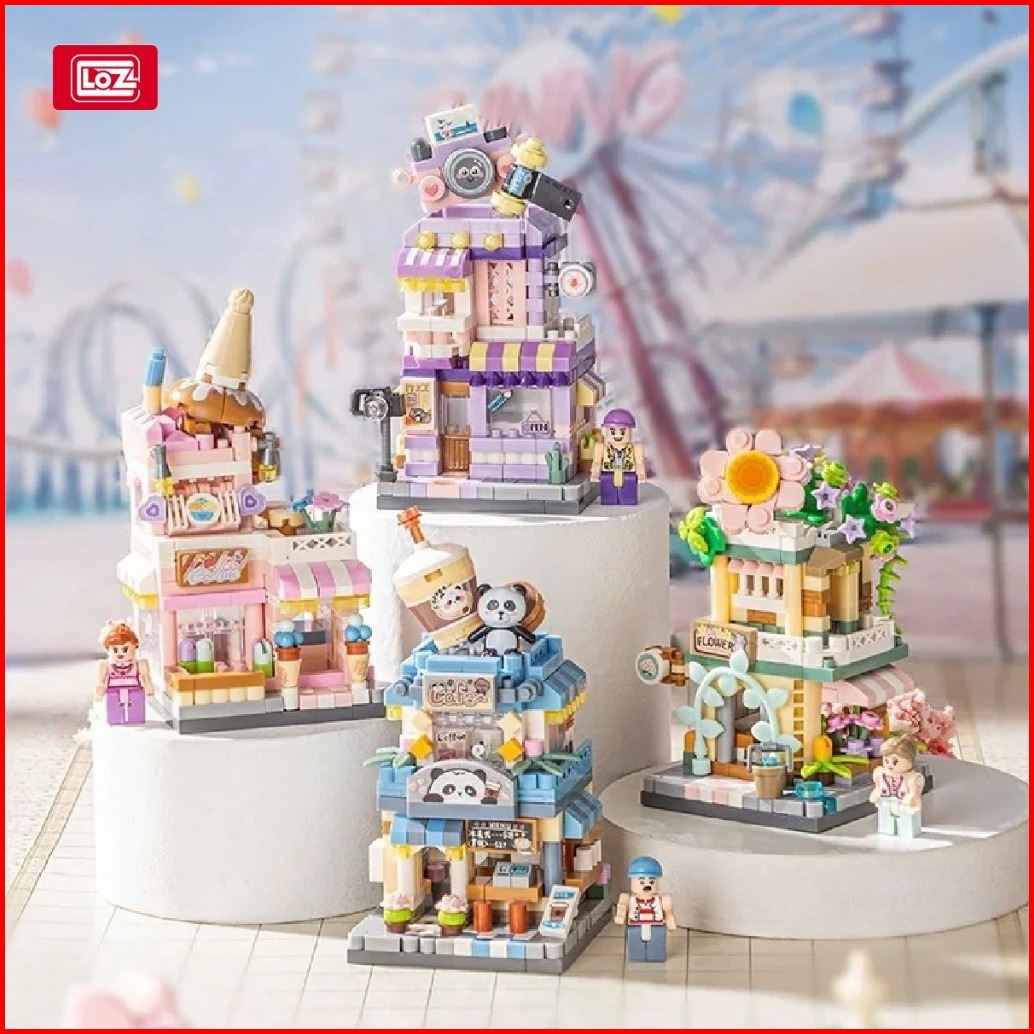 Block City Loz New Mini Street Shop Seri City View Bricks Nano Block Ice Cream Photo Panda Flower