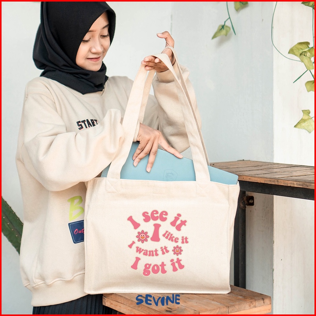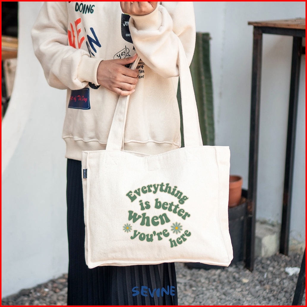 Sevine Totebag Kanvas Daisy Tas Wanita Tote Bag Kantong Laptop Kuliah Sekolah Kerja Quotes Aesthetic - Km