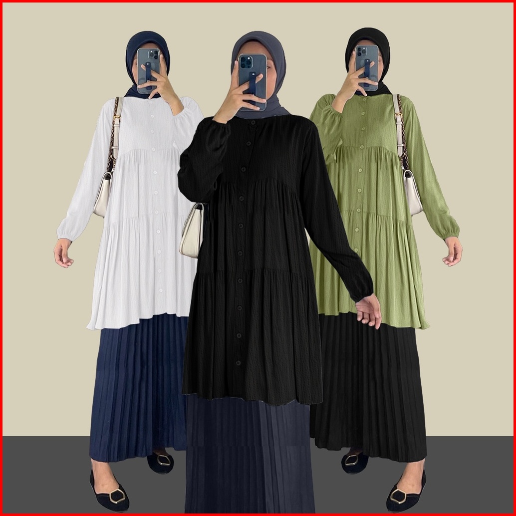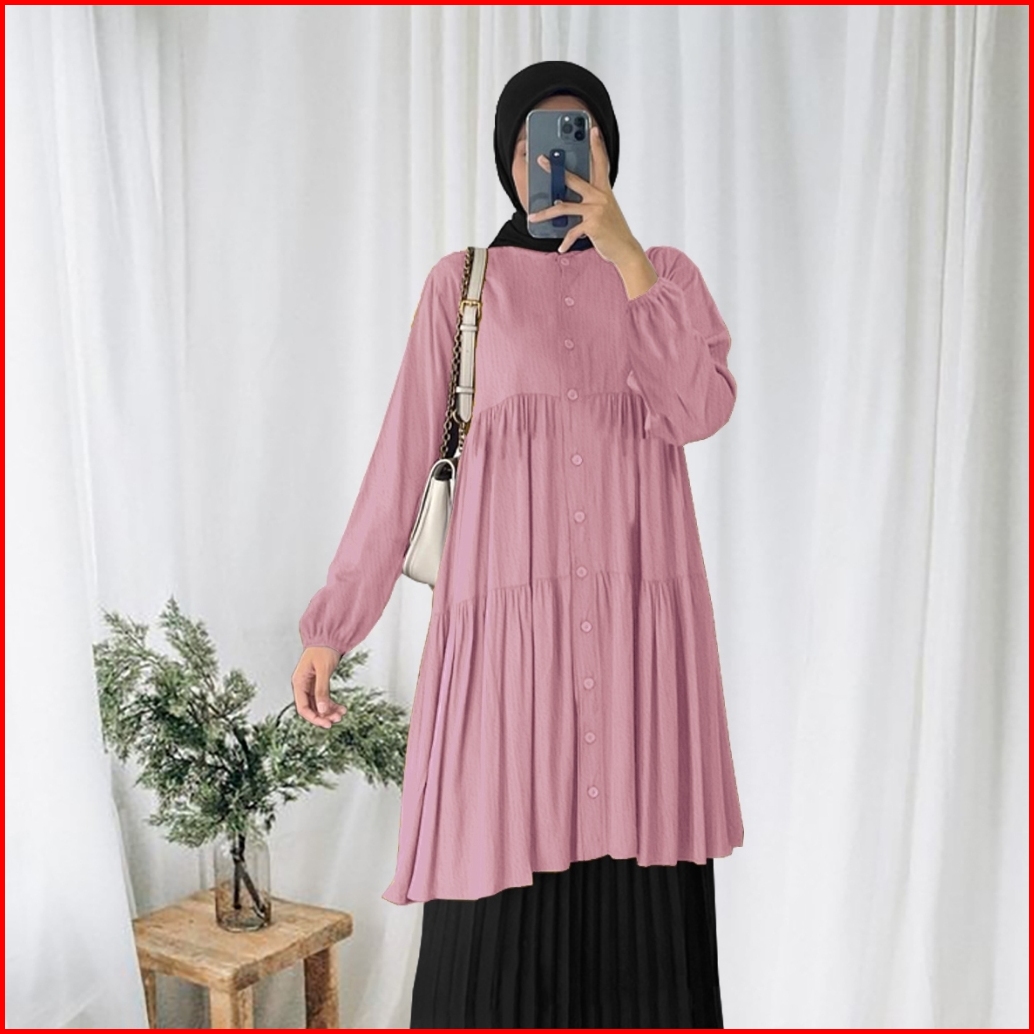 Tunik Layer Crinkle Wanita Kekinian By Youniq