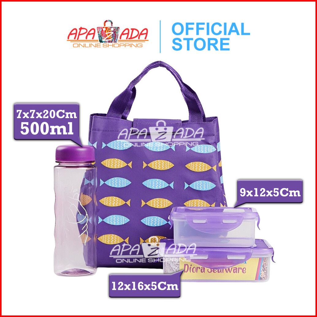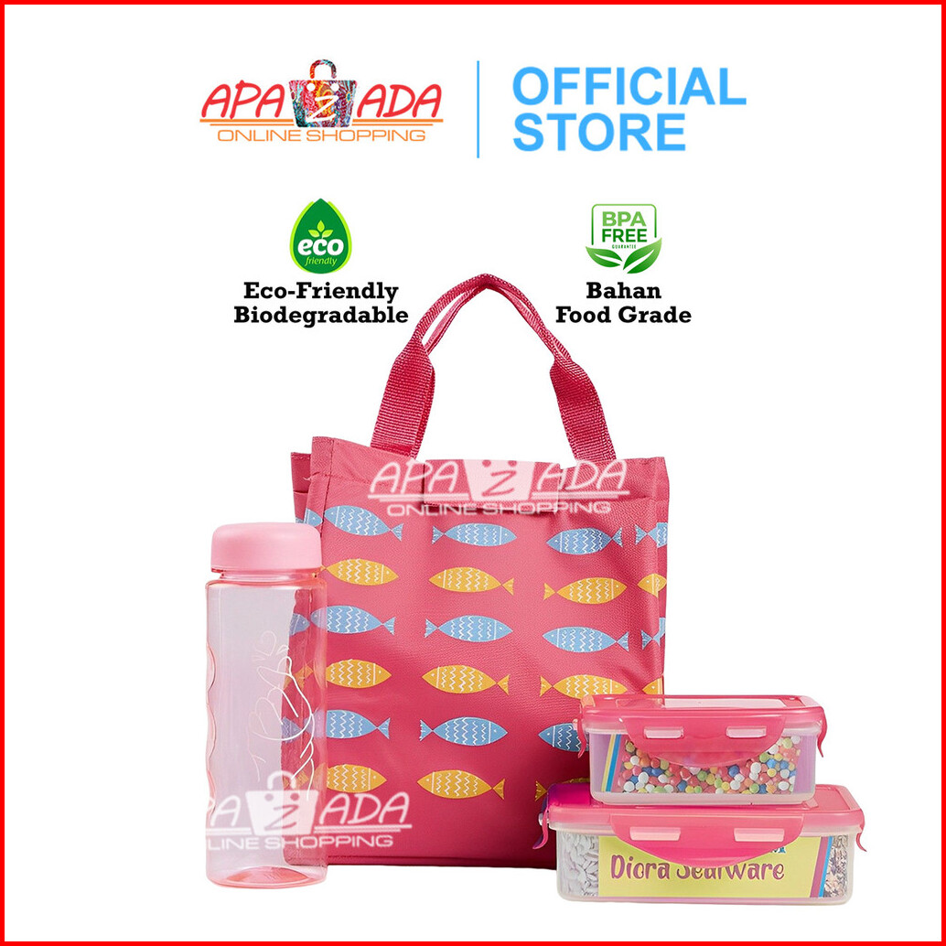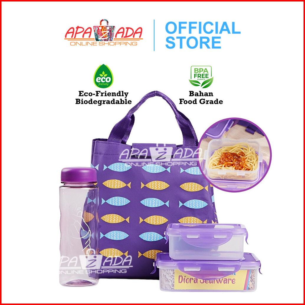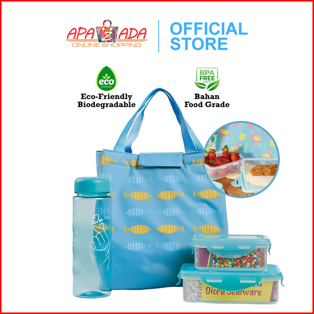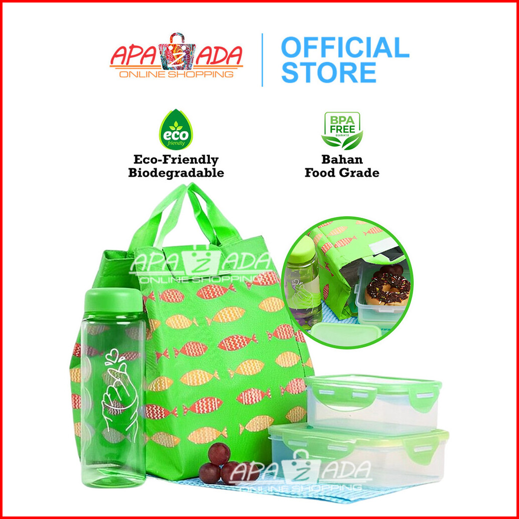 Apazada - Lunch Box Yoshi Fish Set Of 4 Pcs Tas Dengan Tempat Bekal Makan Lunch Bag Kotak Makan