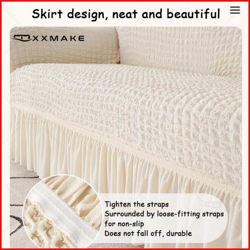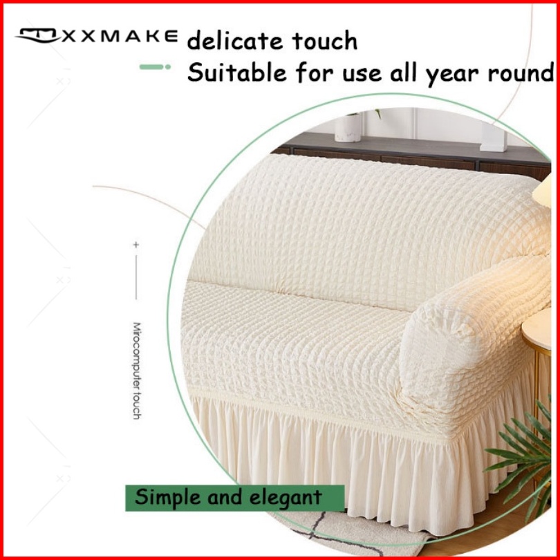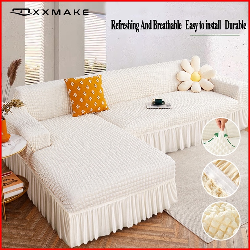 Xxmake Elastis Sofa Cover L Shape With Skirt Stretch Sarung Alas Penutup Sofa Renda Elastis Sofa Pattern Polos