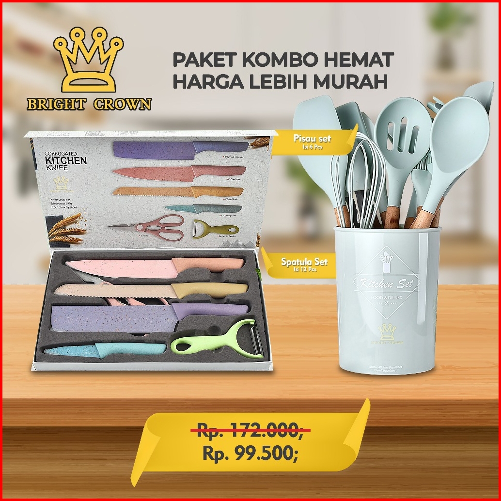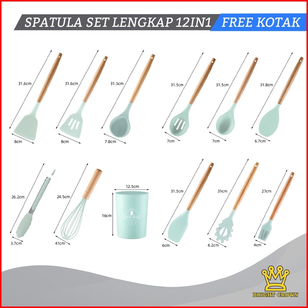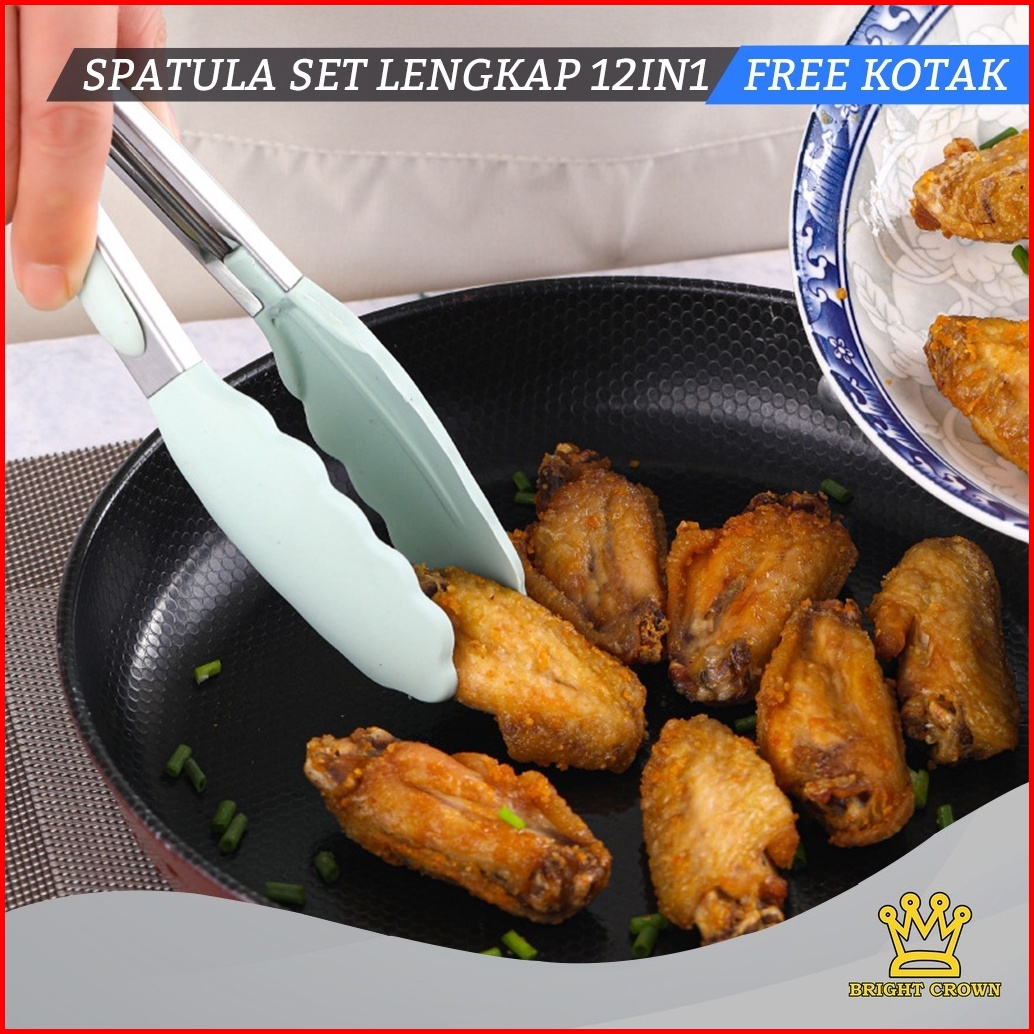 Bright Crown Paket Menang Banyak Spatula Silicone Set Tahan Panas 12 Pcs Pisau Dapur Set 6 In