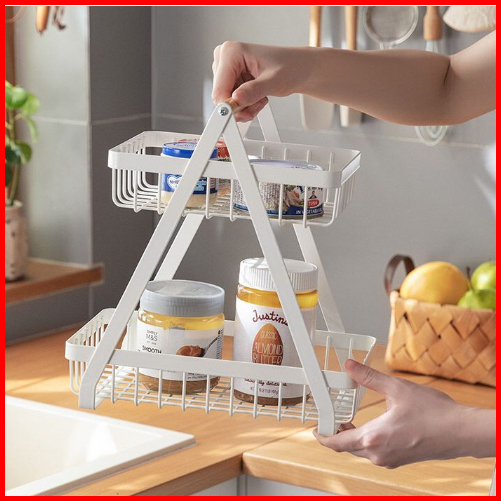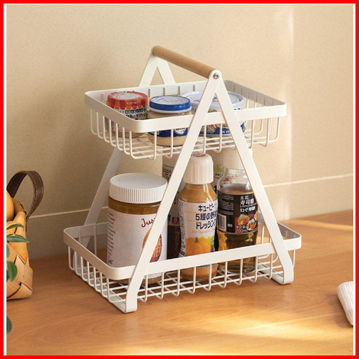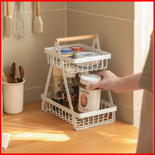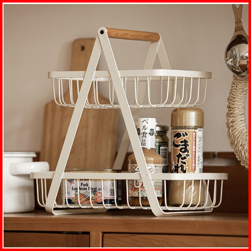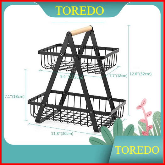 Toredo Keranjang Rak Dapur Rak Buah Besi Rak Dapur Besi Kayu Serbaguna 2 Tingkat Bawang Buah Sayur Estetik