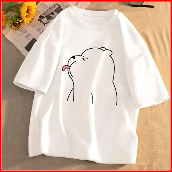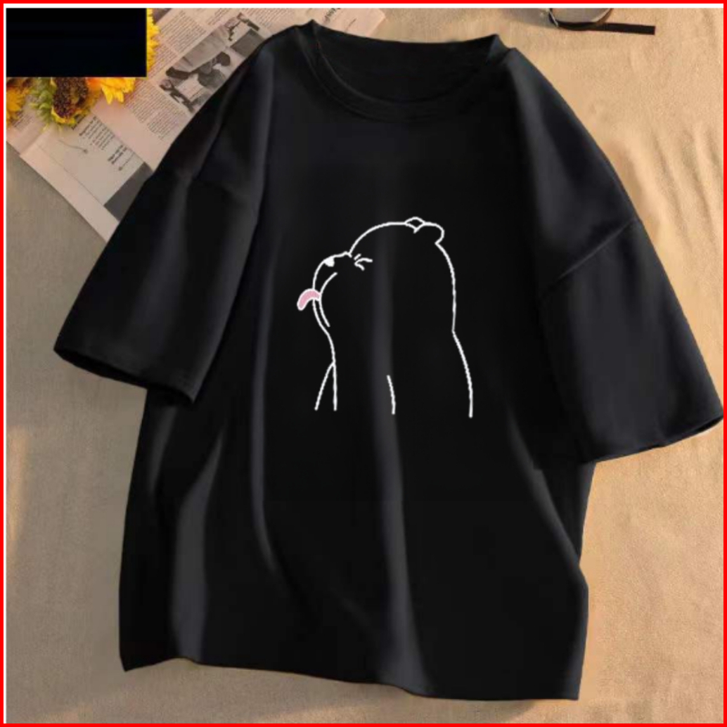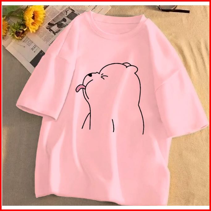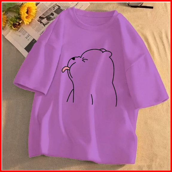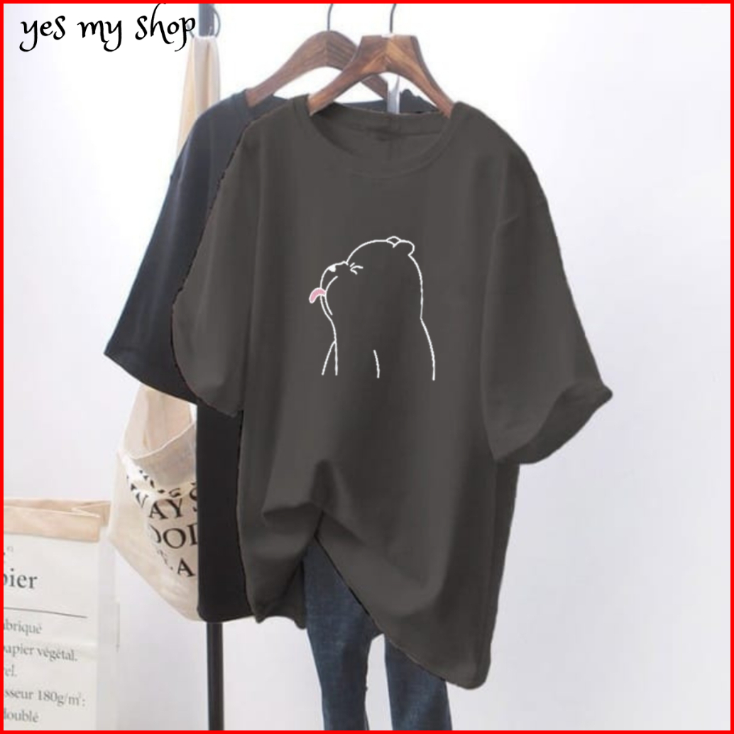 Kaos T-shirt Oversize Wanita - Kaos Distro Wanita - Kaos Streetwear Oversize - Baju Kaos Distro Motif Beruang