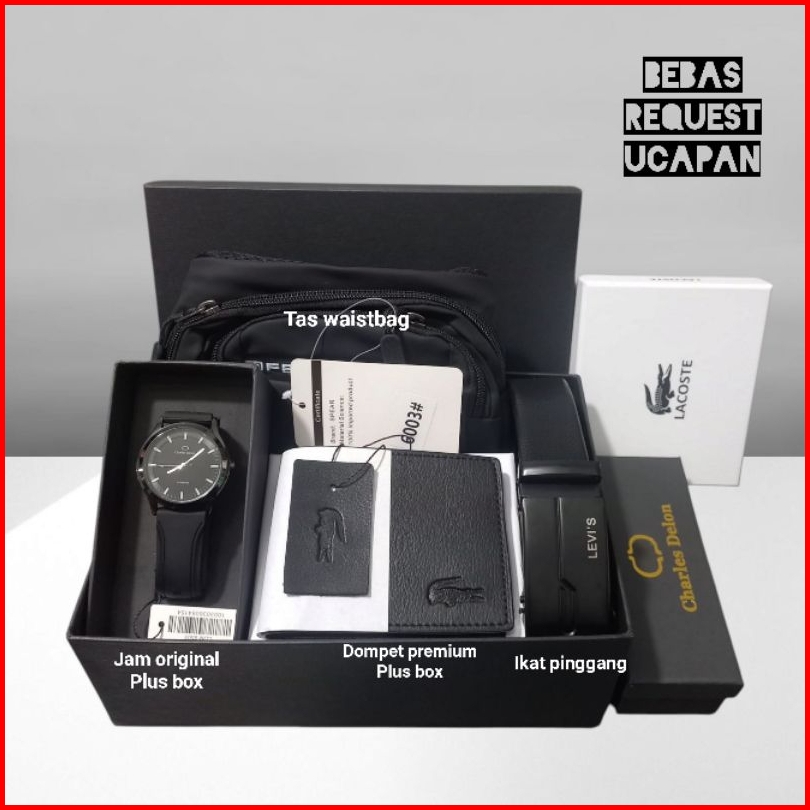 Paket keren plus jam, Tas+dompet+gesper, Jam + tas + dompet, Jam + tas + gesper, Jam + dompet+ gesper, Jam + tas, Tas + dompet, Tas + gesper, Dompet + gesper, Jam + dompet