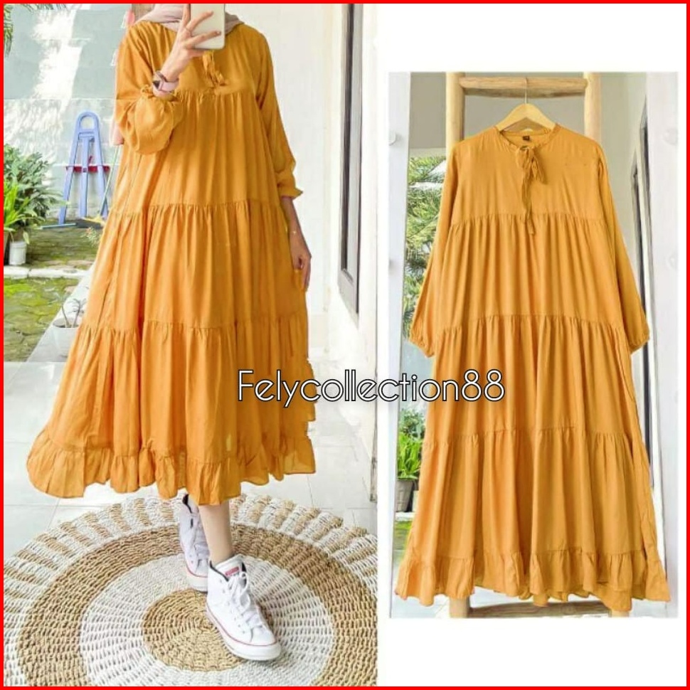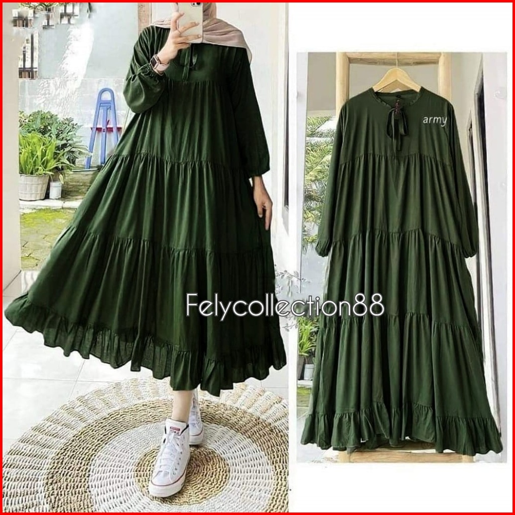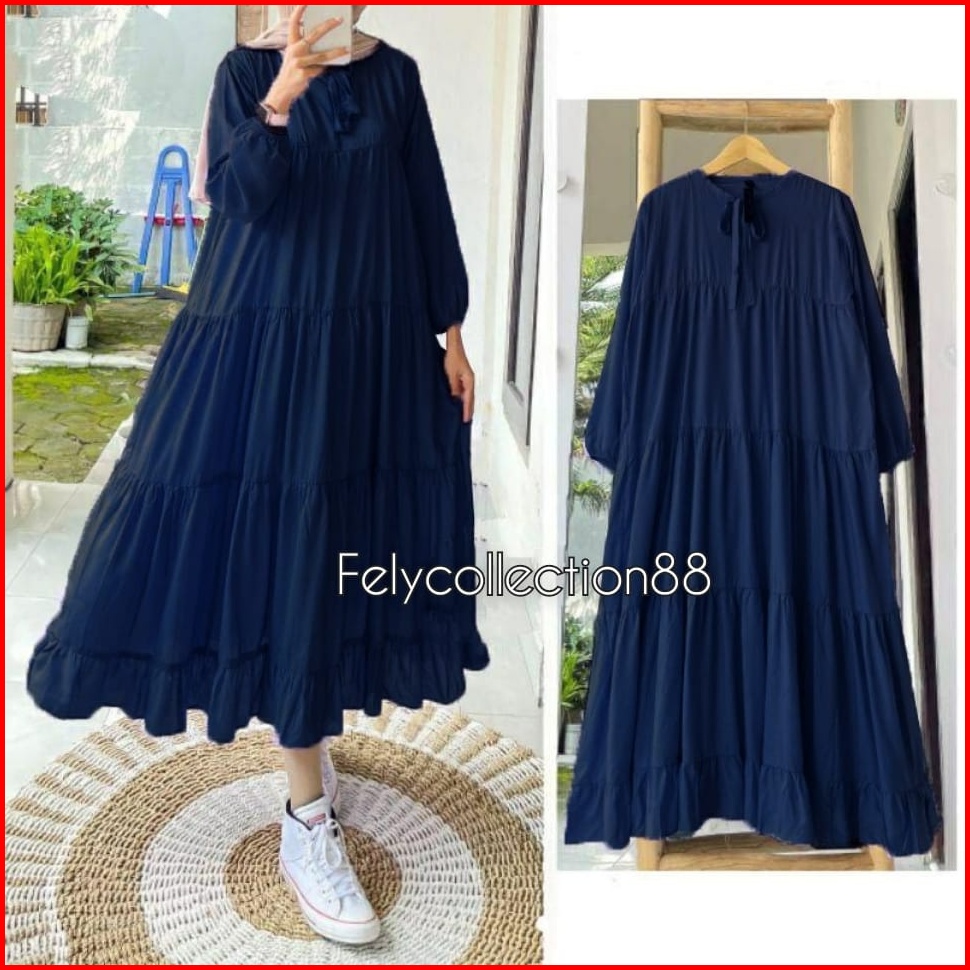 Rachel Midi Dress Busui Friendly Gamis Wanita Terbaru Kekinian Fashion Muslim Bahan Katun Micro