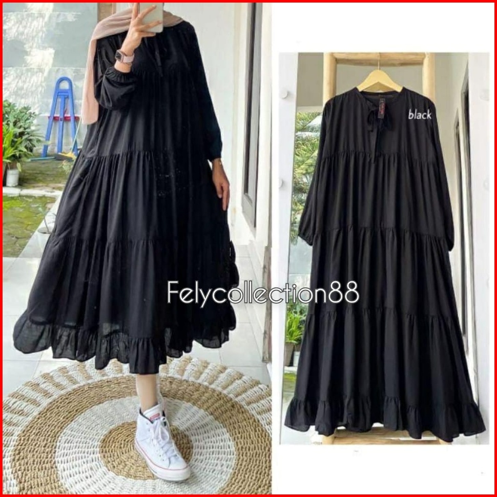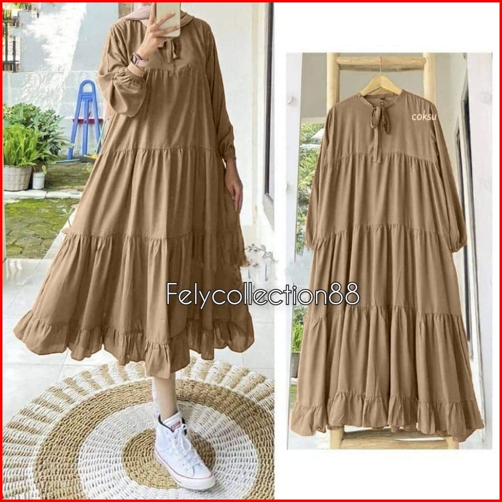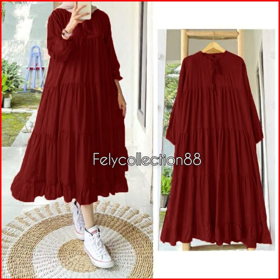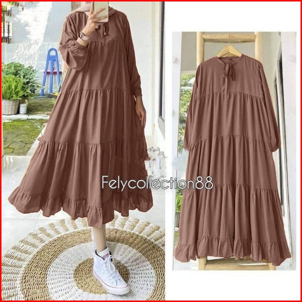 Rachel Midi Dress Busui Friendly Gamis Wanita Terbaru Kekinian Fashion Muslim Bahan Katun Micro