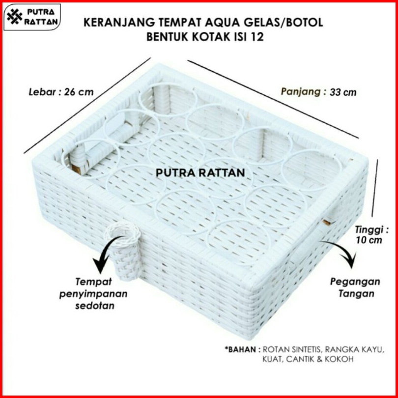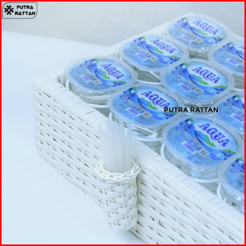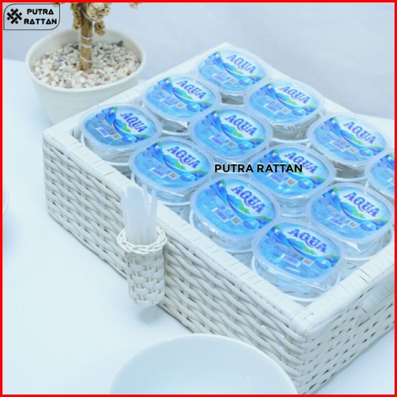 Keranjang Tempat Aqua Gelas Bentuk Kotak Bahan Rotan Sintetis Isi 12