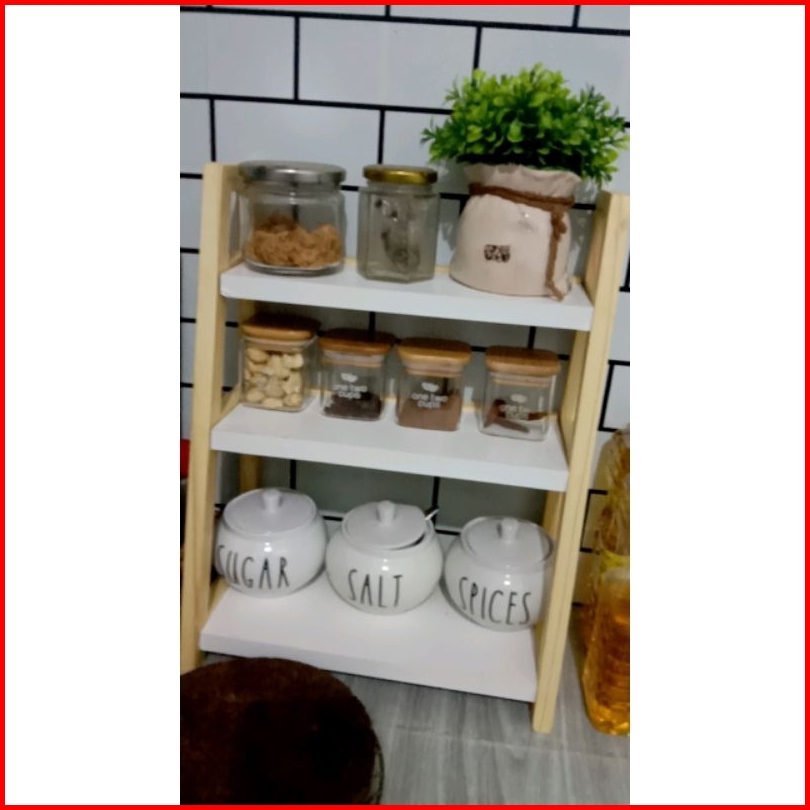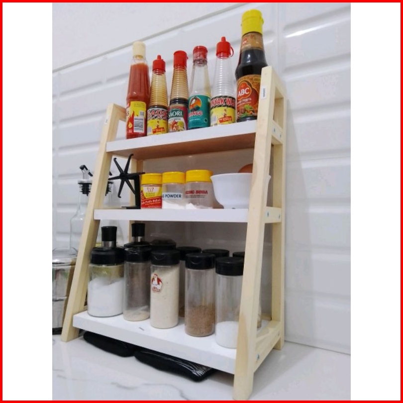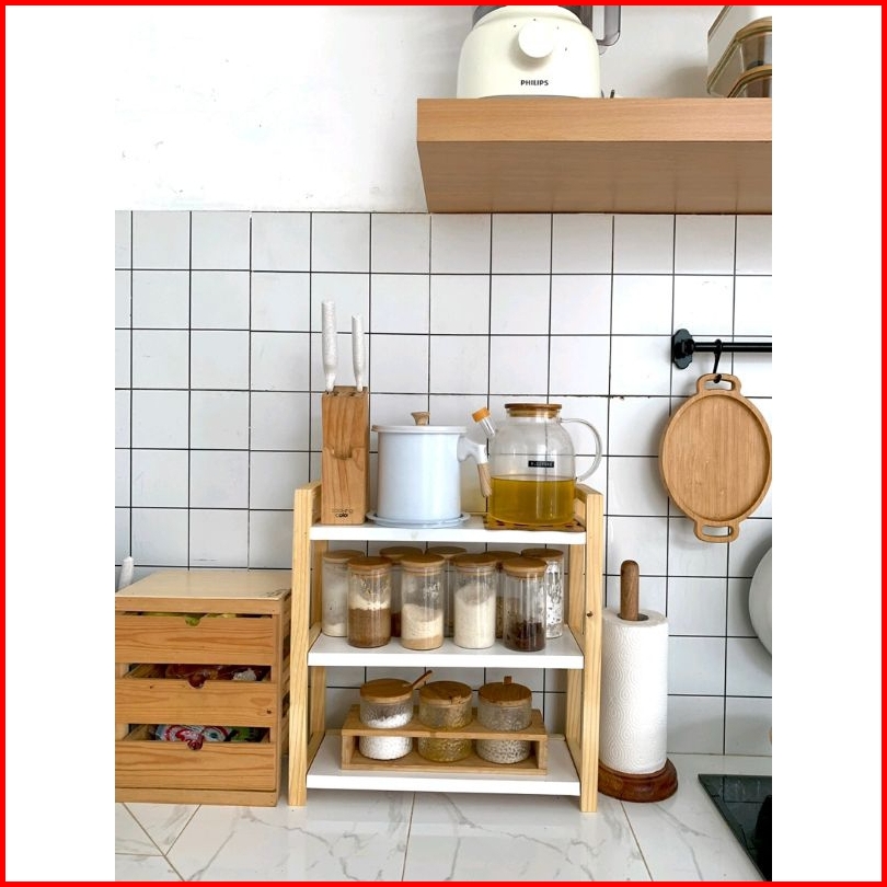 Rak 3 Tingkat Multifungsi Rak Bumbu Dapur Serbaguna Rak Kayu Duduk Kosmetik