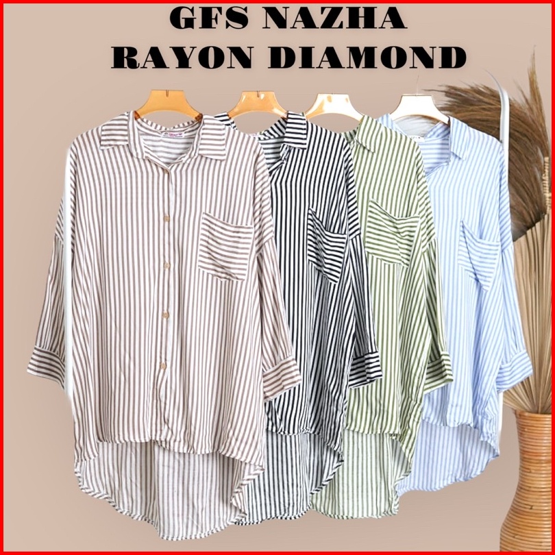 Girlfashionstory Original Sp Best Seller Nazha Oversize Shirt Rayon Diamond R28stok Kmj