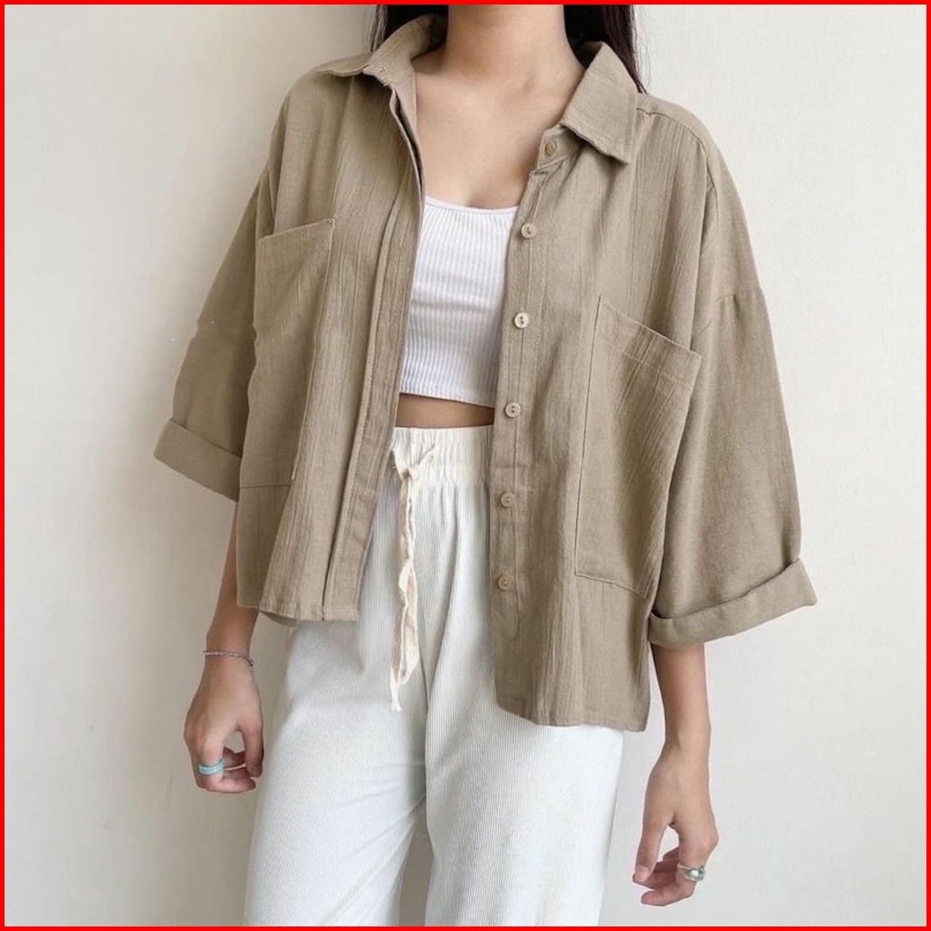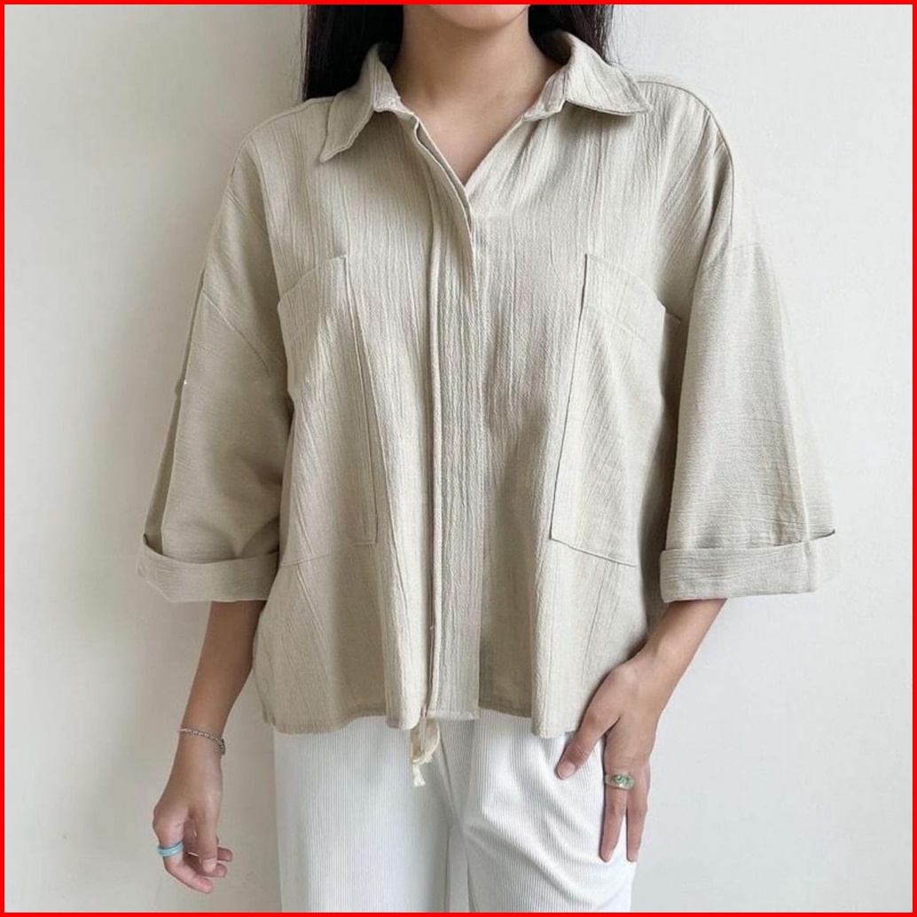 Girlfashionstory Original Tbm Cozie Linen Crincle Oversize Shirt