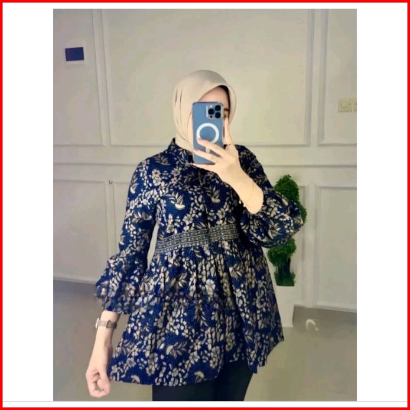 Tey-17 Batik Wanita Asj Sa Hrb026 Kenongo Kemeja Tosca Pendek