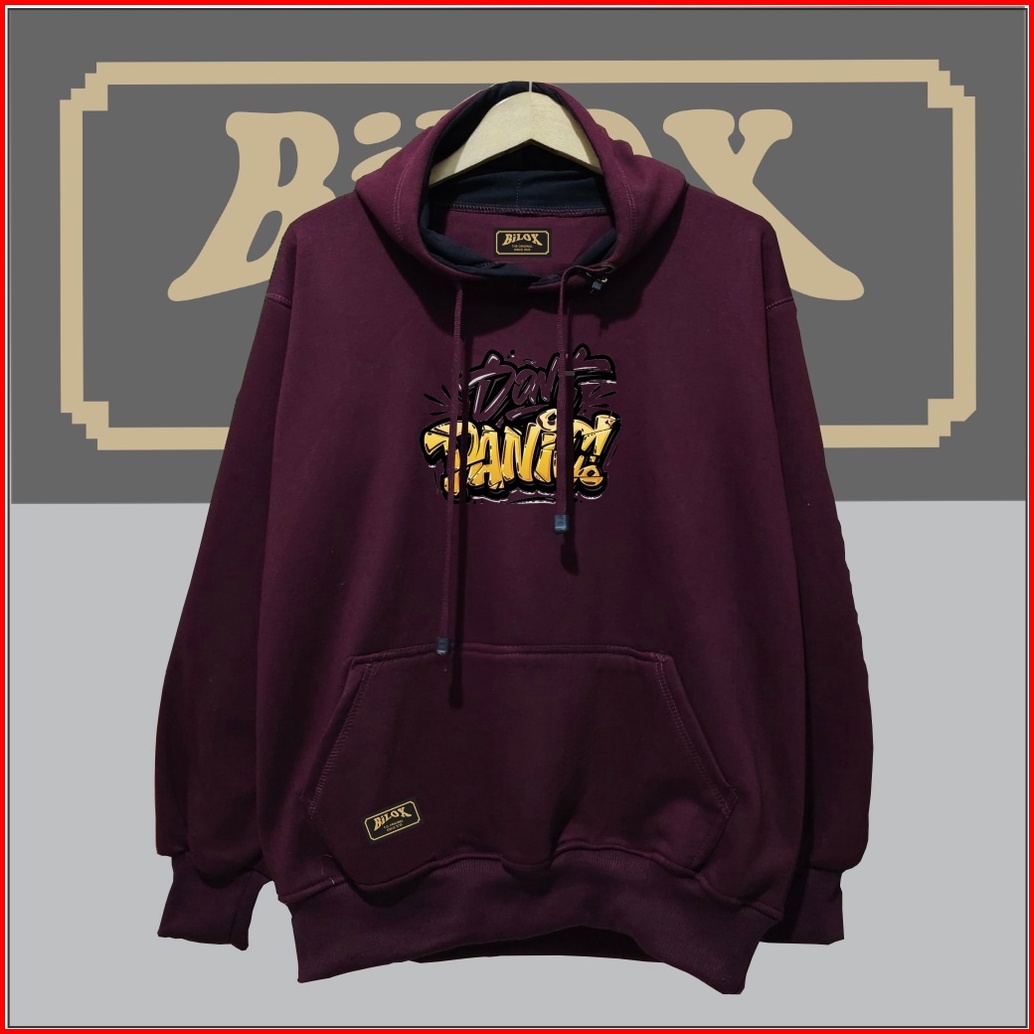 Sweater Hoodie Pria Wanita Dont Panic Warna Burgundi Sablon Size Jumbo Gaya Korean Street Boho