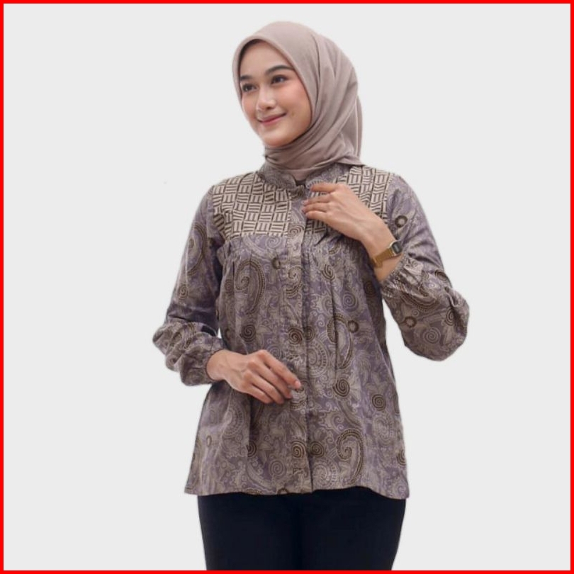 Tey-17 Batik Wanita Asj Sa Hrb026 Kenongo Kemeja Tosca Pendek