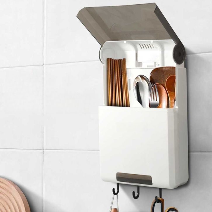 Tempat Sendok Garpu Sumpit dengan Tutup Rak Wadah Dapur Tertutup Tempel Dinding Kotak Organizer