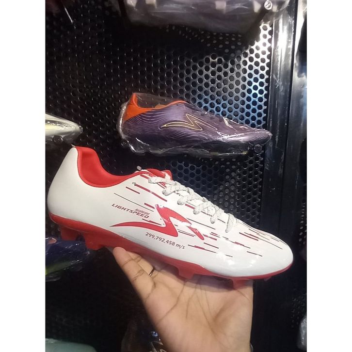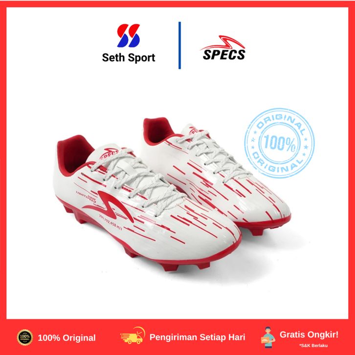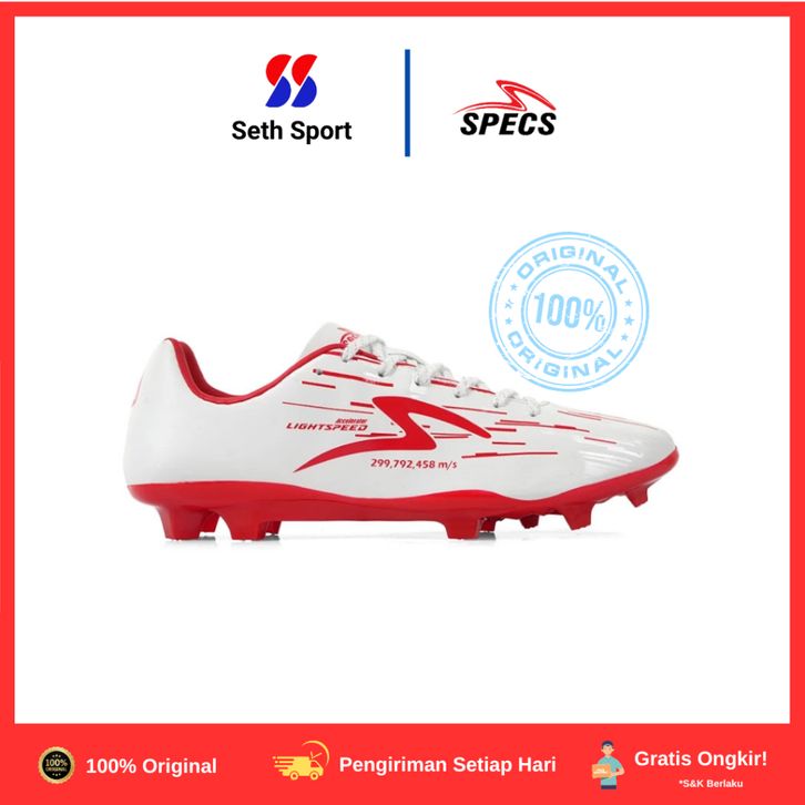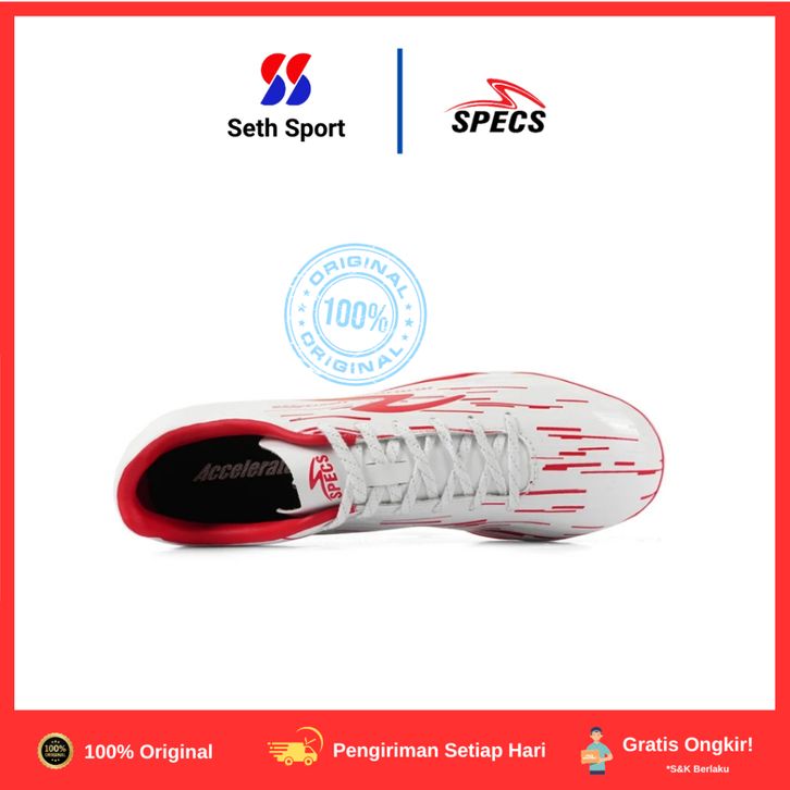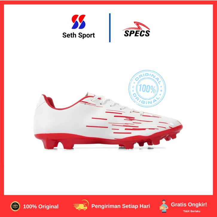 ( ORIGINAL ) Sepatu Bola Specs Accelerator Lightspeed Reborn FG Original - White / Emperor Red