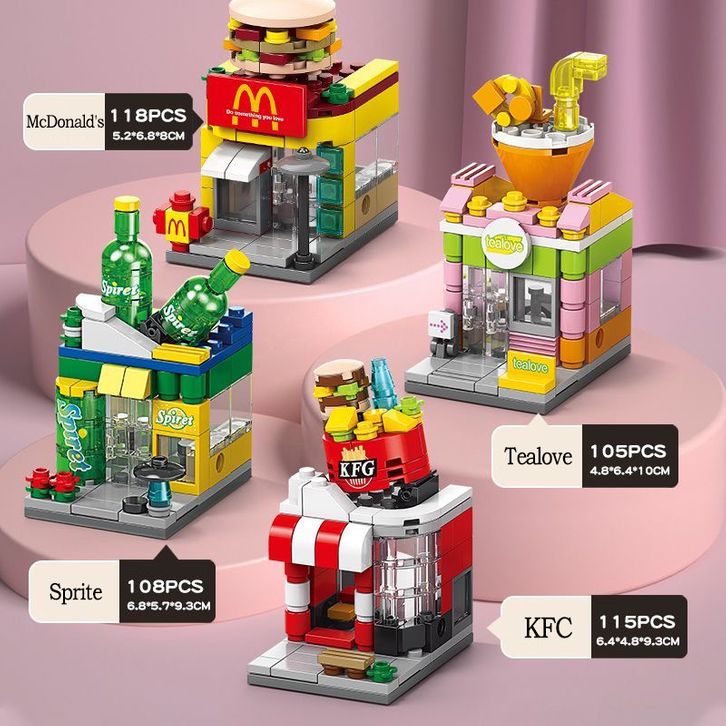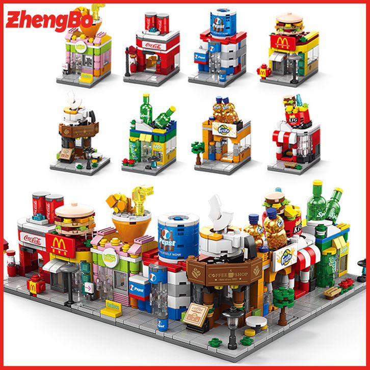 ZhengBo Mainan Balok City Toko McDonald's Model 3D Puzzle Edukasi Mainan Anak Anak 6/7/8 tahun