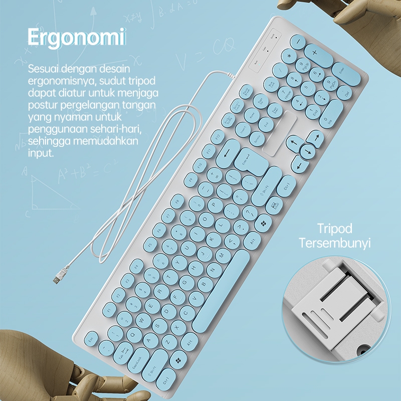 BASIKE Keyboard PC Laptop Wired USB Kabel Portable Ergonomi 104 Keys Tuts Bulat Macaron Ta
