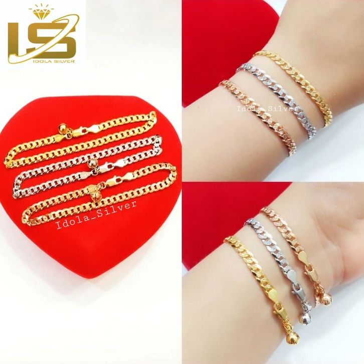 GELANGG PERAK ASLI SILVER 925 LAPIS EMASS MODEL SISIK NAGA UKIR+KRINCING 1 BUNYI - PERHIASAN PERAK WANITA