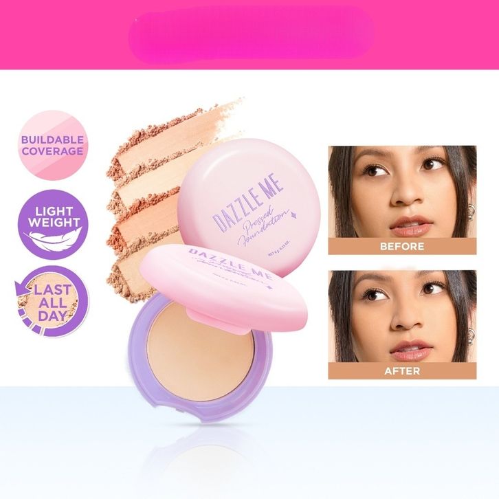 Bedak Padat Dazzle Me Foundation Long Lasting Oil Control Matte Compact Powder Bpom Menyamarkan Noda Hitam