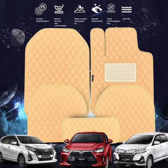 Karpet Mobil Full SET 5Pcs Karpet Universal Mobil Floor Liner PU Kulit Tikar Lantai Mobil