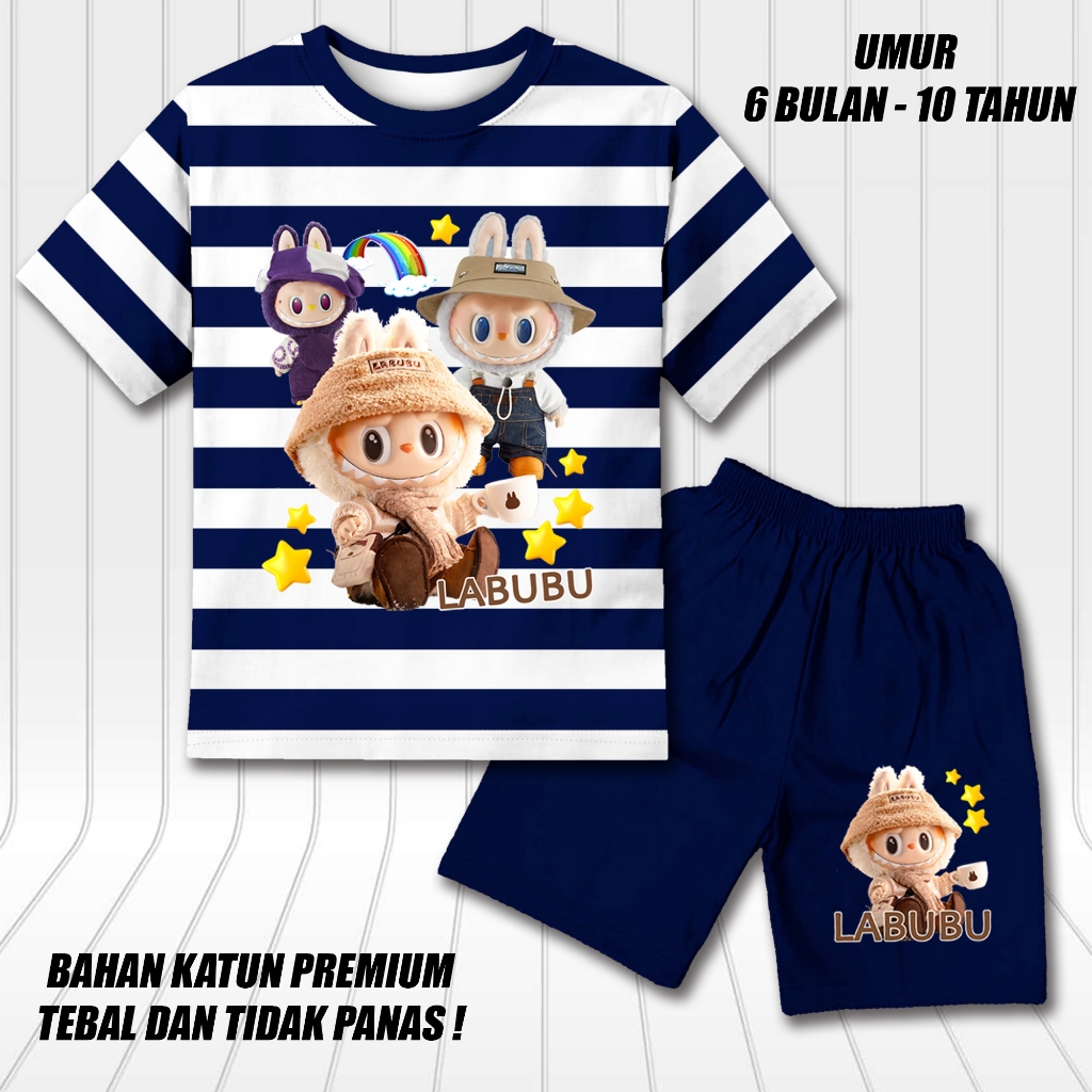 SETELAN SALUR LENGAN PENDEK ANAK LAKI LAKI PEREMPUAN SET BAJU KAOS PENDEK ANAK COWOK MOTIF LABUBU 4 DTF