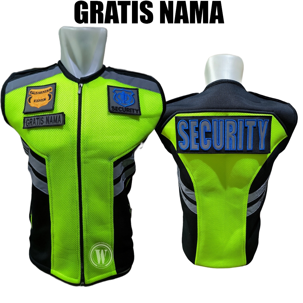 Gratis Nama - Rompi Satpam Security DoubleMesh Tebal Stabilo Iga Hitam Terbaru