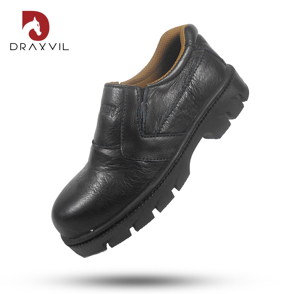 Draxvil Kulit Sapi Asli - Sepatu safety pria kulit sapi asli DRAXVIL Original, sepatu slip on